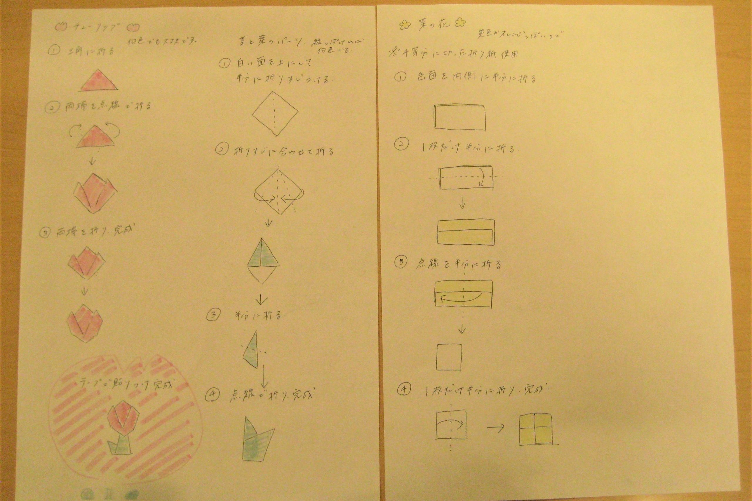 制作では季節を感じてもらえる様どのようなものを作るか、ご利用者にとって「この作業工程はどうか」などいろいろ考え、口頭で説明すると伝わりにくいものは、手作りの説明書を作りました。