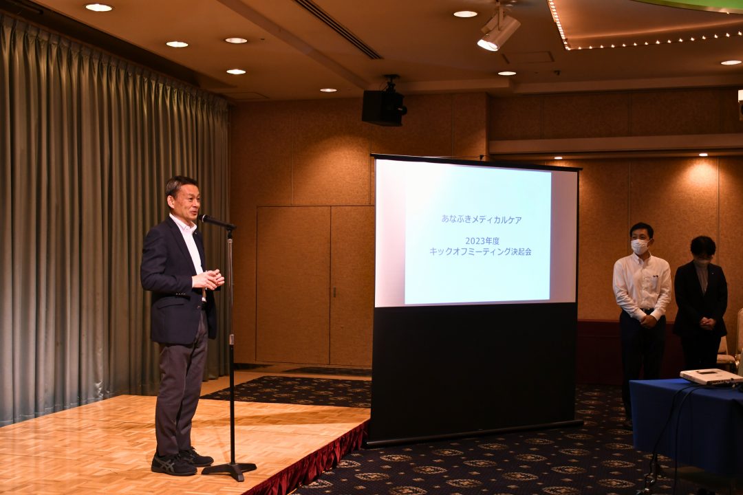 続いて、おぶ事業本部長、ひろた事業部長、しまづ管理部長、あなぶきヘルスケア高齢者住宅紹介事業部ふくなが部長より、各部門の方針発表がありました。