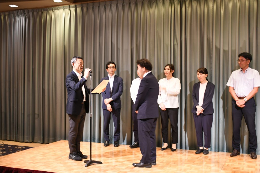 会議終了後は、リーガホテルゼストにて、決起会を行いました。永年勤続表彰、2022年度の各種賞の受賞施設の発表・表彰も行い、笑顔があふれた会となりました。