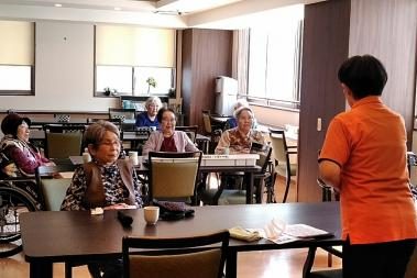 今回は口腔体操後にカラオケと、美味しいお茶を飲みながらの談笑会(という名の回想法)を行いました。
