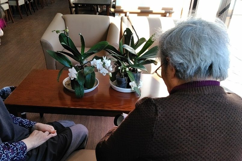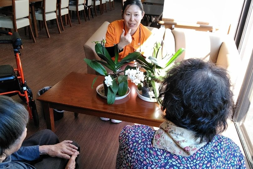ご入居者や看護スタッフのゆがりさんにお世話の方法をたくさんレクチャーしていただき、命を吹き帰した小さな蘭を楽しんでいます。