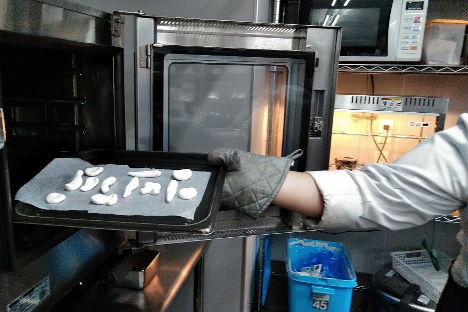 ノーマルな形から桜島大根、白鳥、ねじりパン等々・・・創作意欲に火が付き、いろいろな形の箸置きがたくさんできました。(仕上げは少しスタッフが成形させていただきました。)