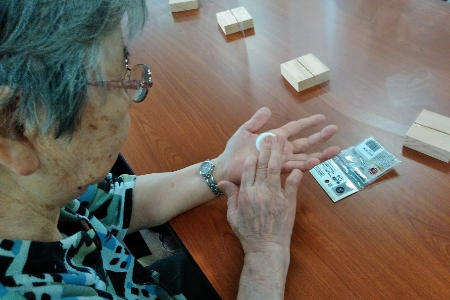 最初は「手先がええように動かん。」「力が入らん。」などの声が聞こえてきましたが、次第に「手の運動になってええなぁ。」と順応されているご様子。