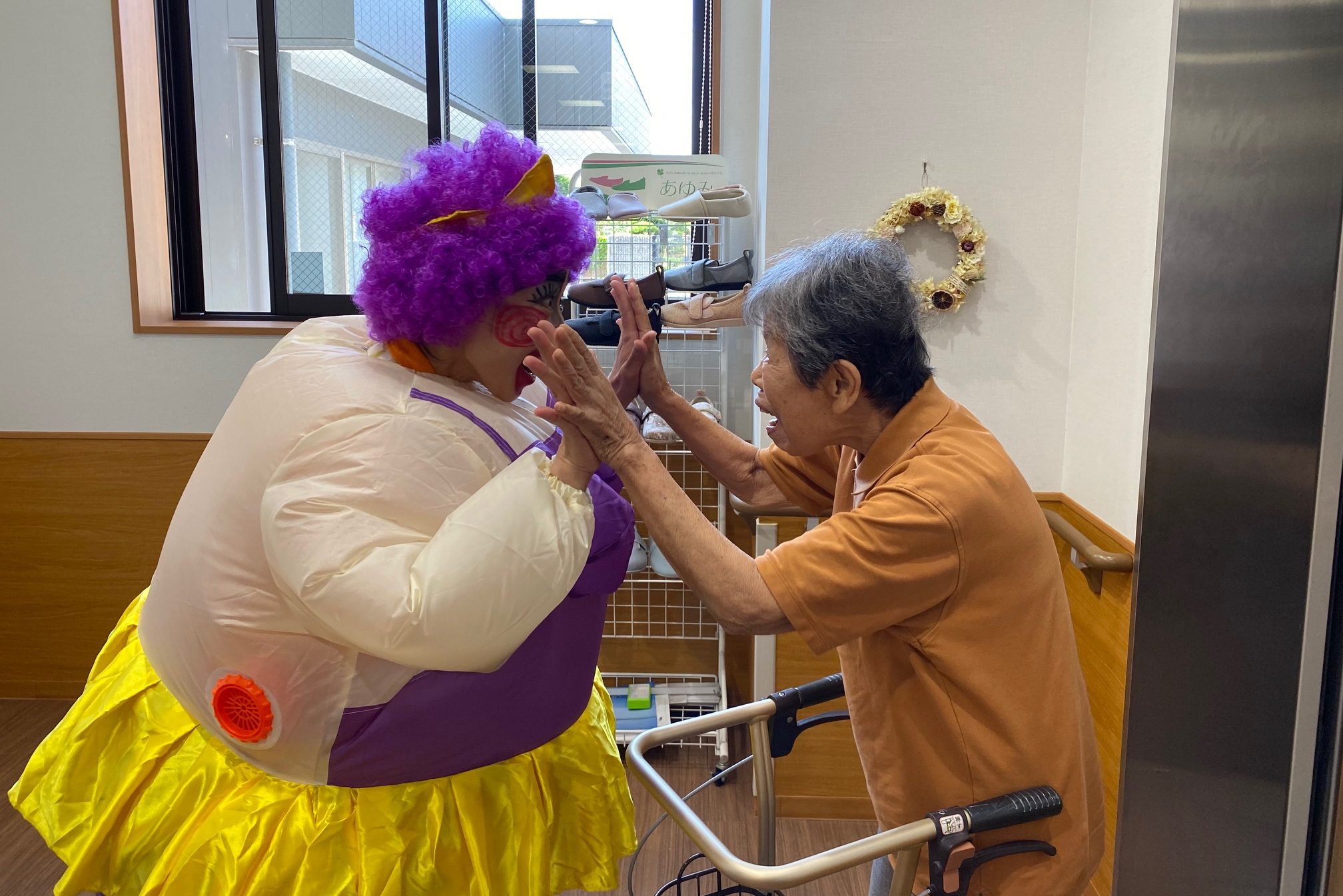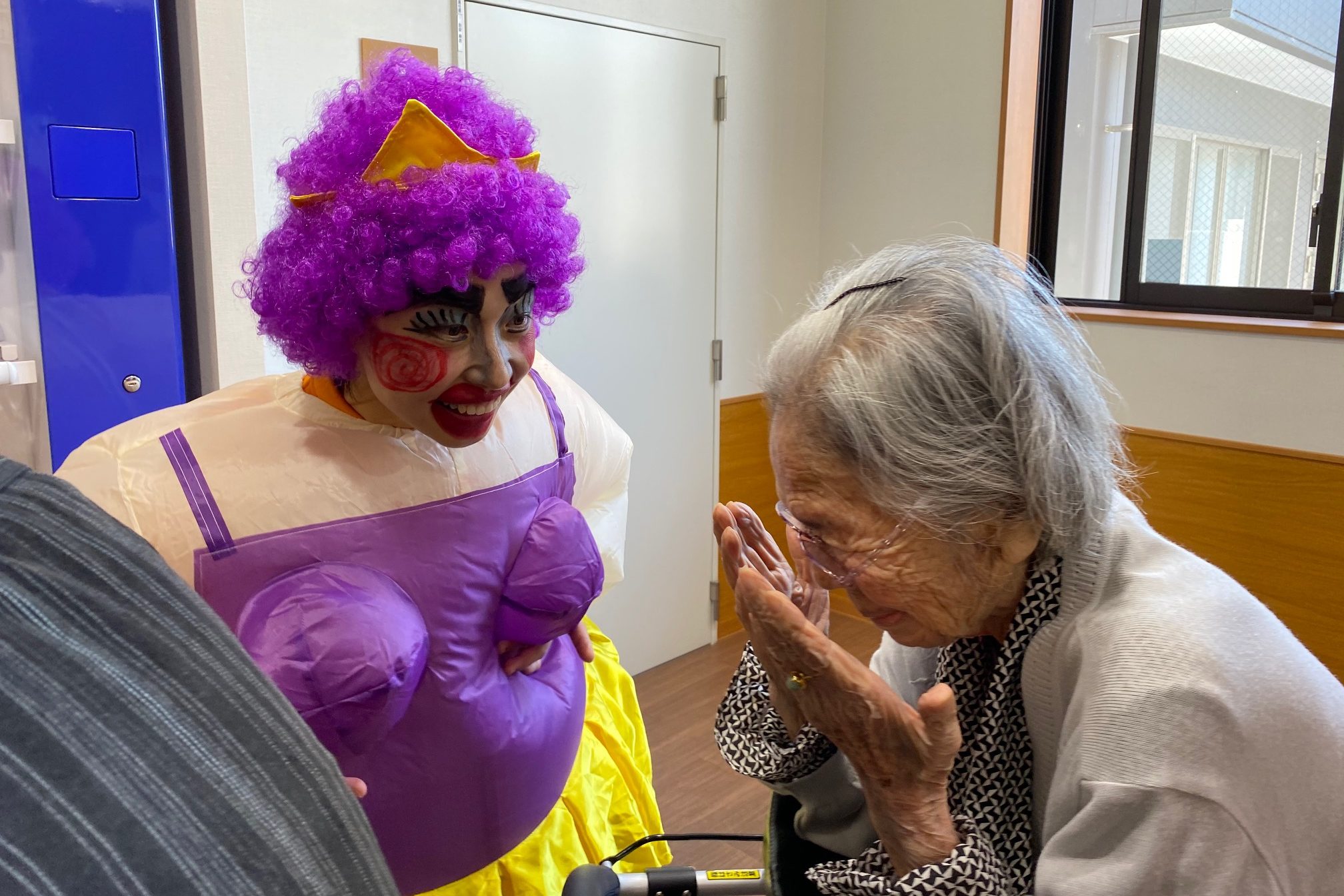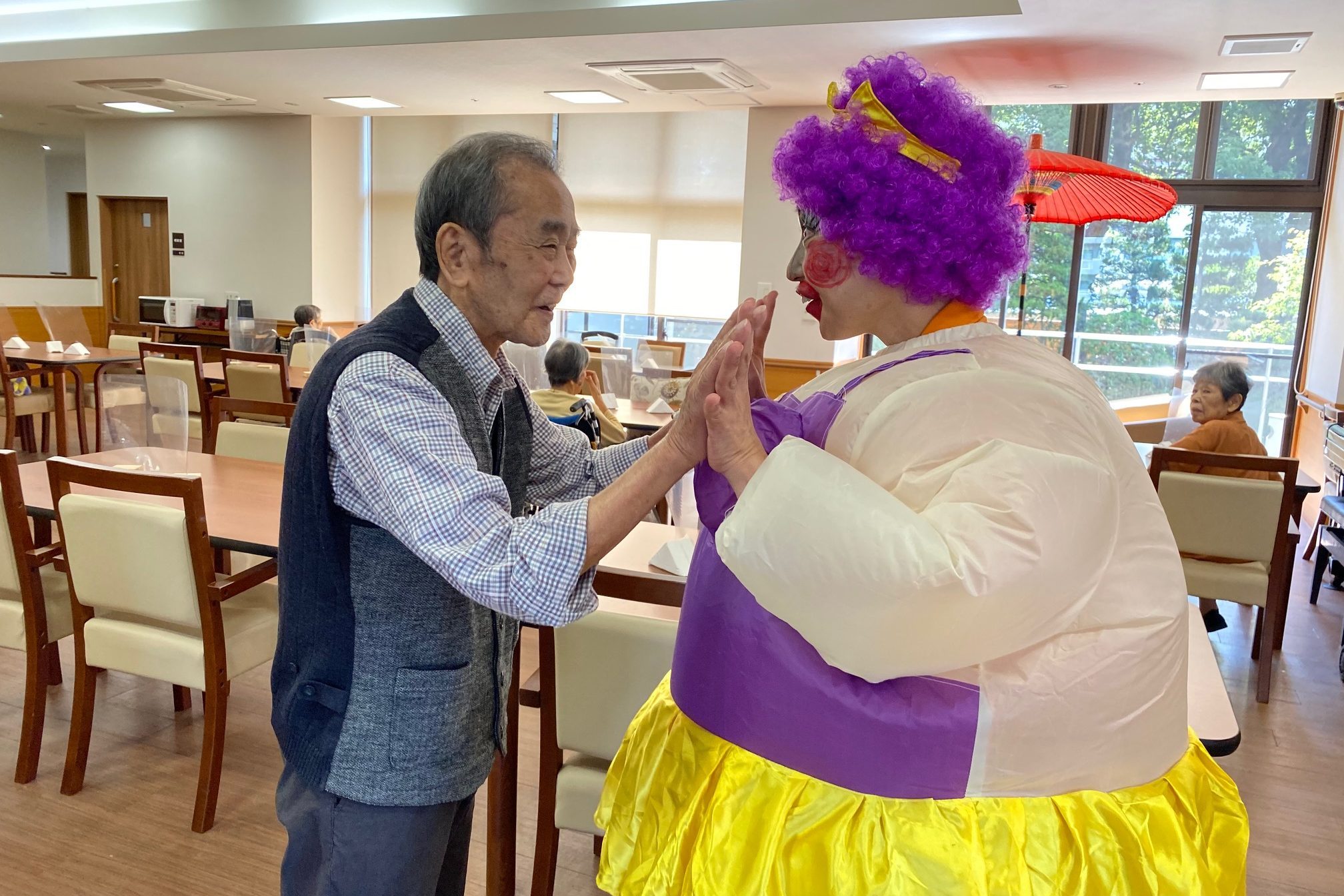 美バレリーナは笑顔が大好物とのことで、ご入居者の皆さまへ挨拶に♪