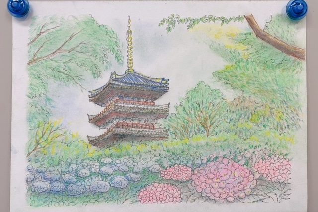 「目も悪くなったし、腰も痛いのよ」とおっしゃいながらも、作業に取り掛かられる様子は画家の先生そのものです。