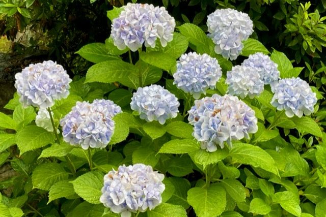 デイサービスから見える紫陽花は薄い水色と少し珍しいのです。