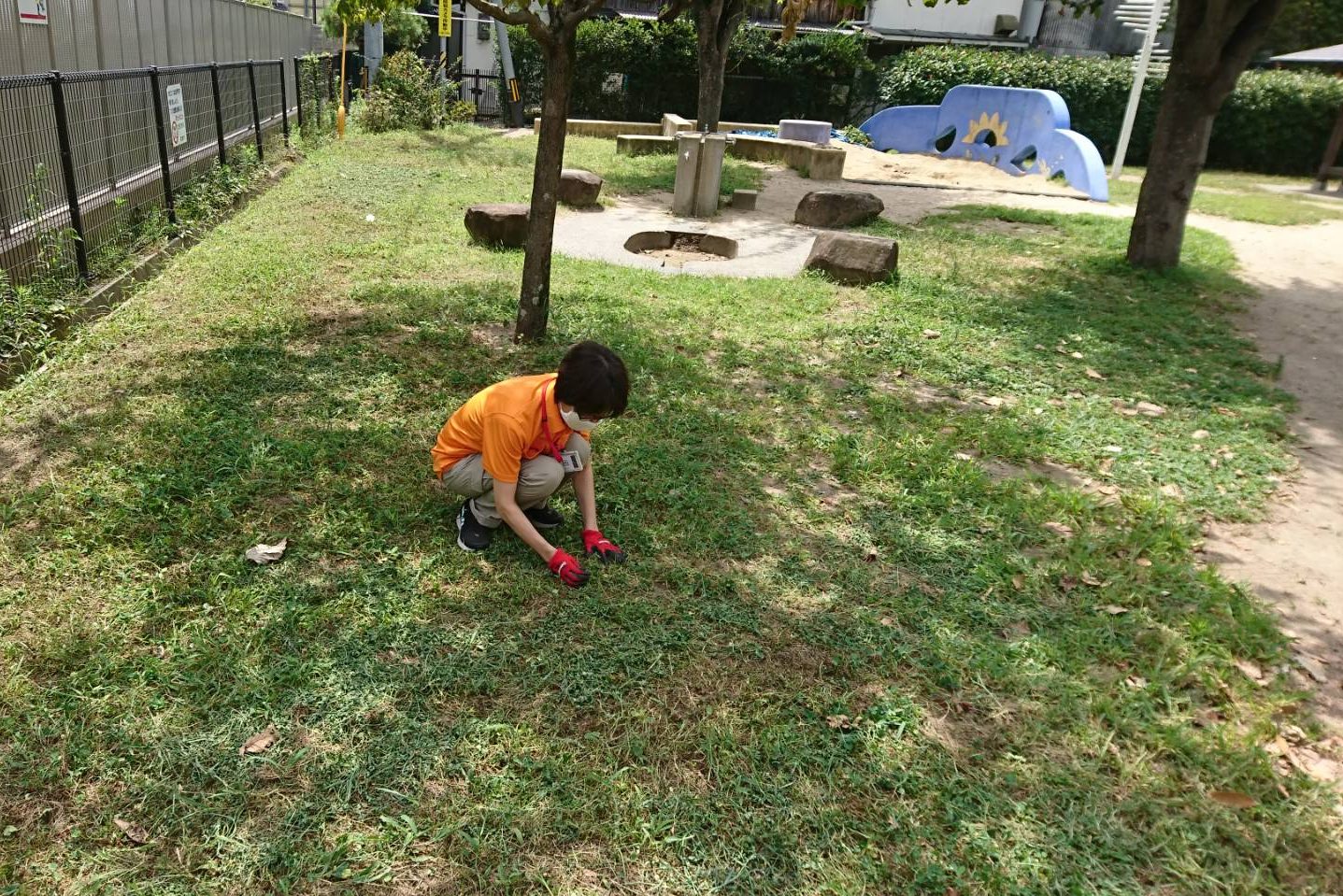 今年はコロナウイルス感染症の影響で、夏祭りも中止になりましたが、感染が落ち着ていた時期に町内の老人会の方々と公園の清掃を行いました。