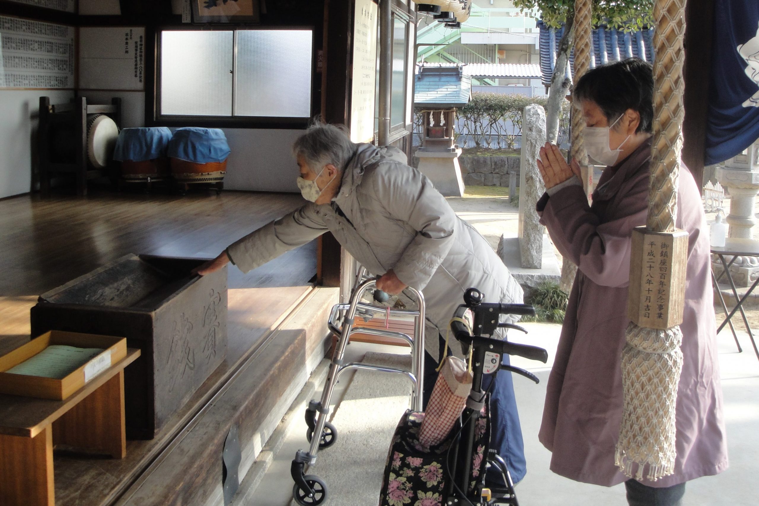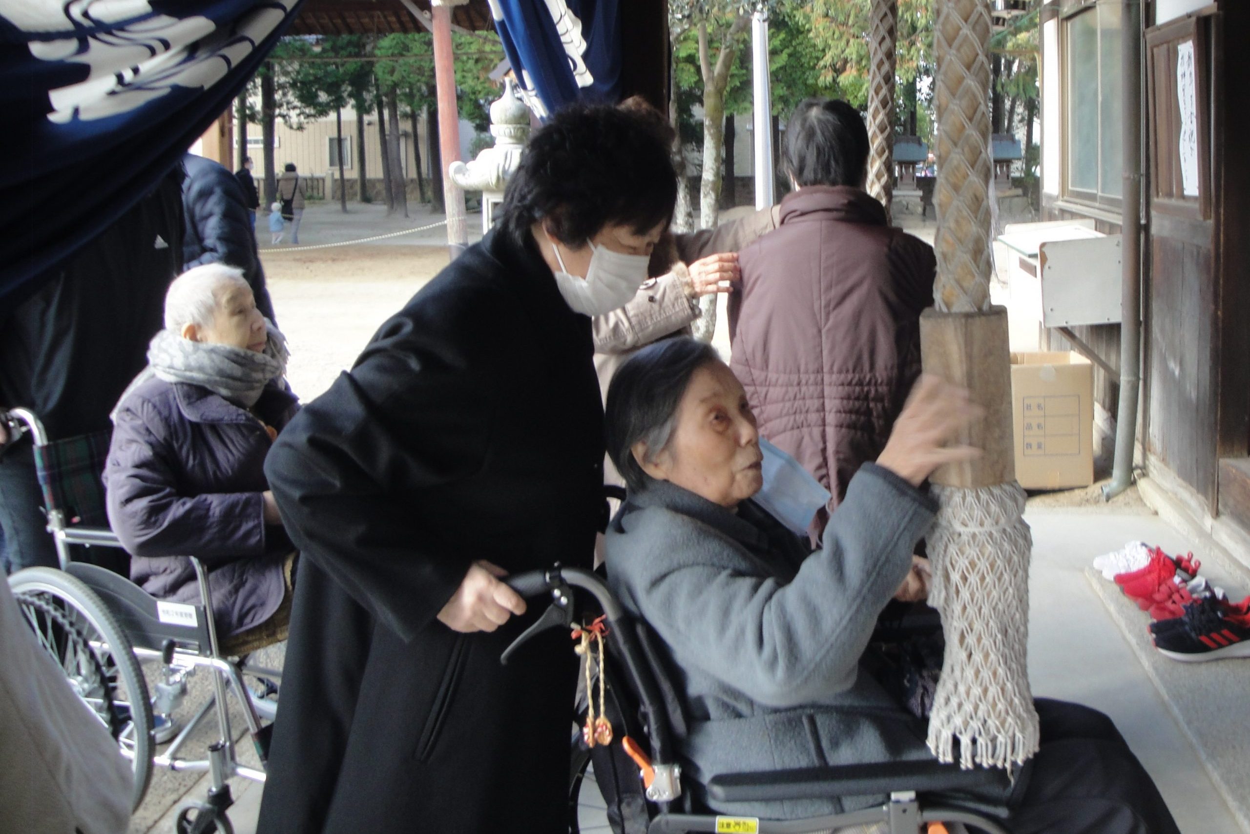 「子供と孫のことを祈願したんじゃ」と満面の笑みで教えてくれるご入居者や、おみくじやお守りを購入され、楽しまれているご様子を沢山見ることができました。