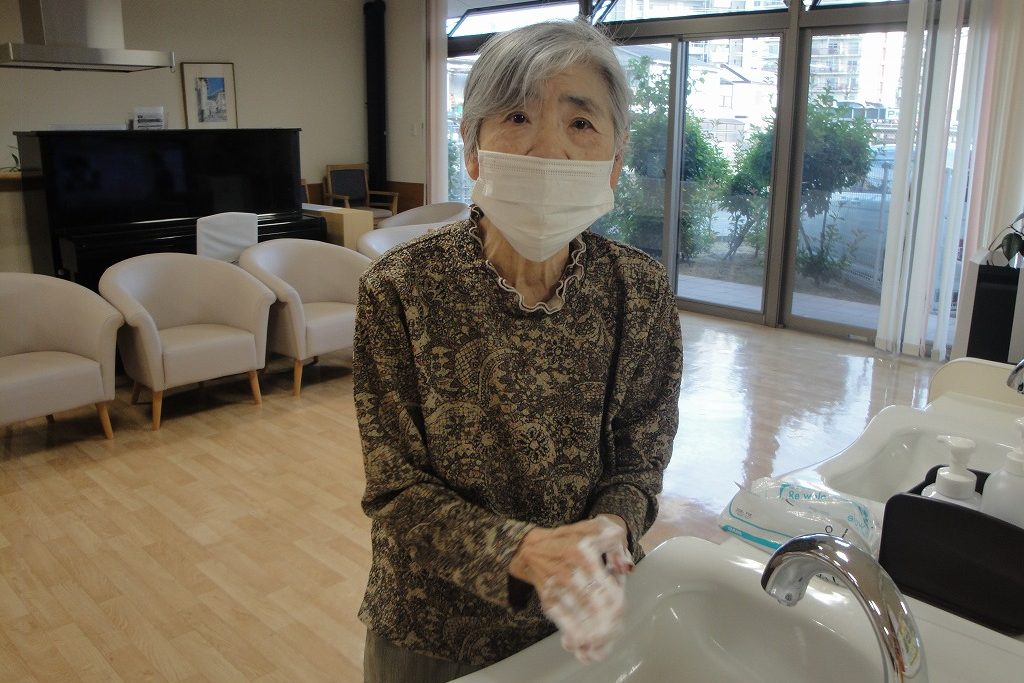 ご入居者にもマスクや手洗いをしっかりとしていただいています。