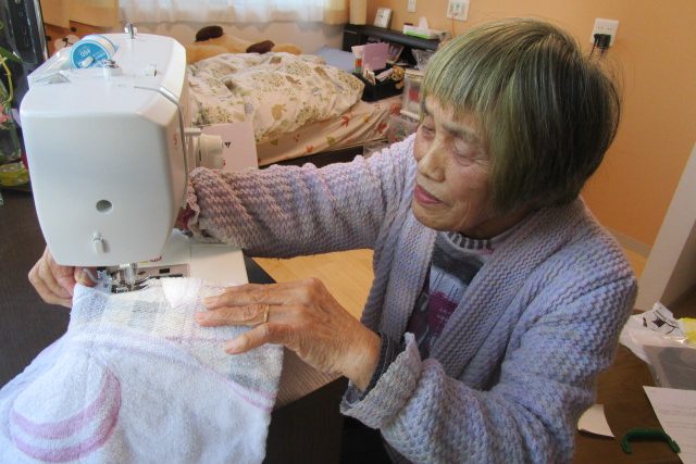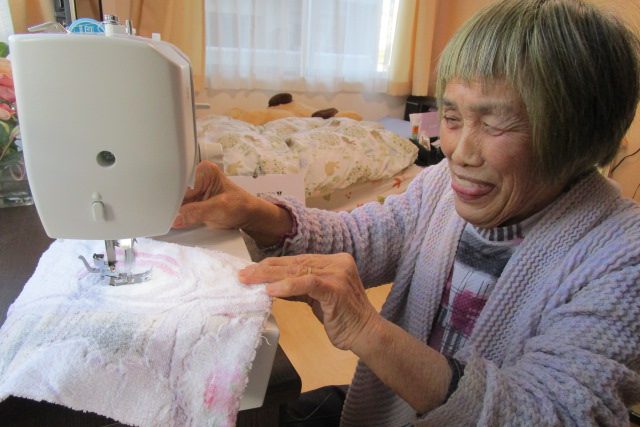 その一方で、「何か仕事はない~?仕事をちょうだい。」と事務所へ顔を出されることがあり、新聞紙でゴミ箱を折ってくださったり雑巾を縫ってくださったりと大活躍です。