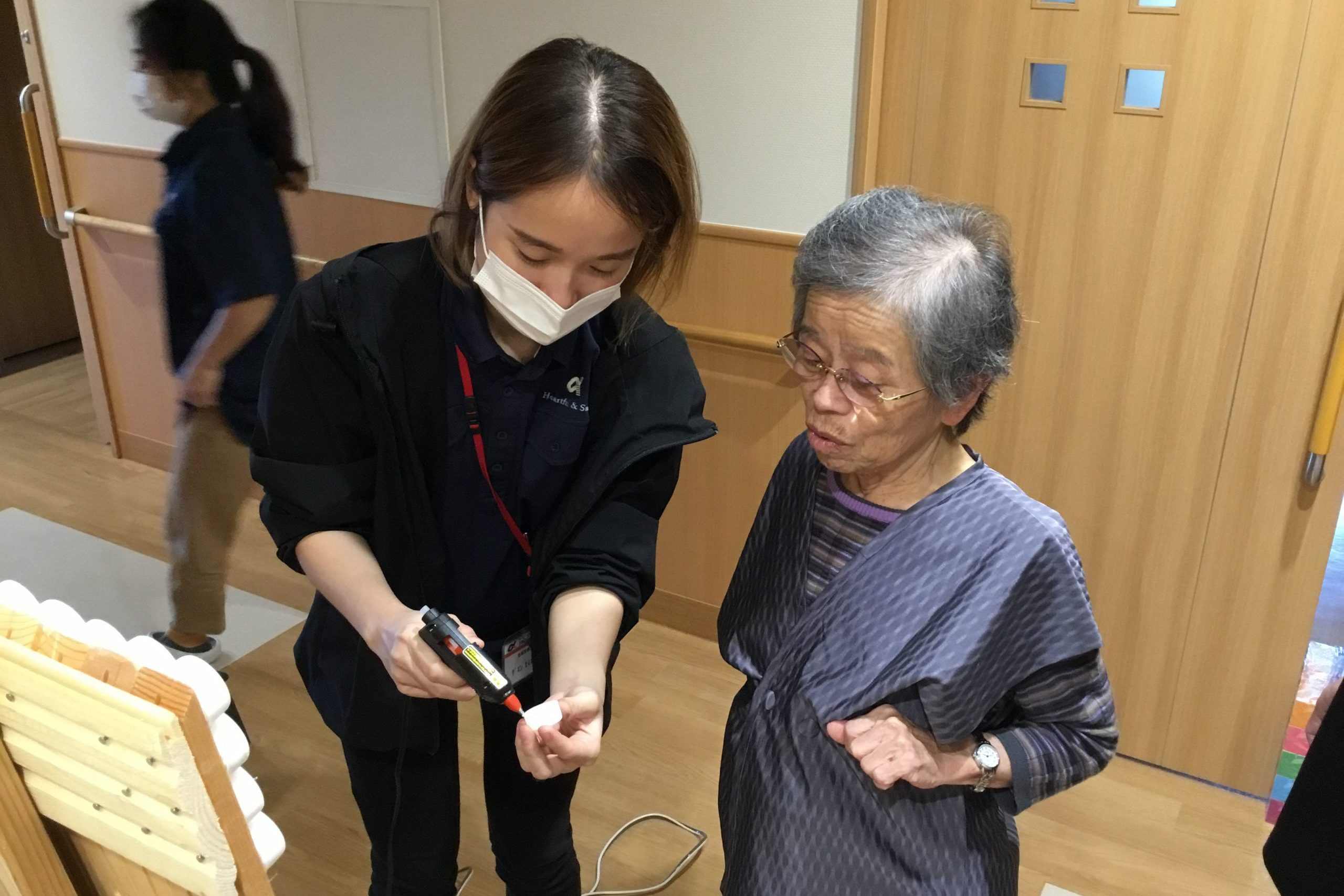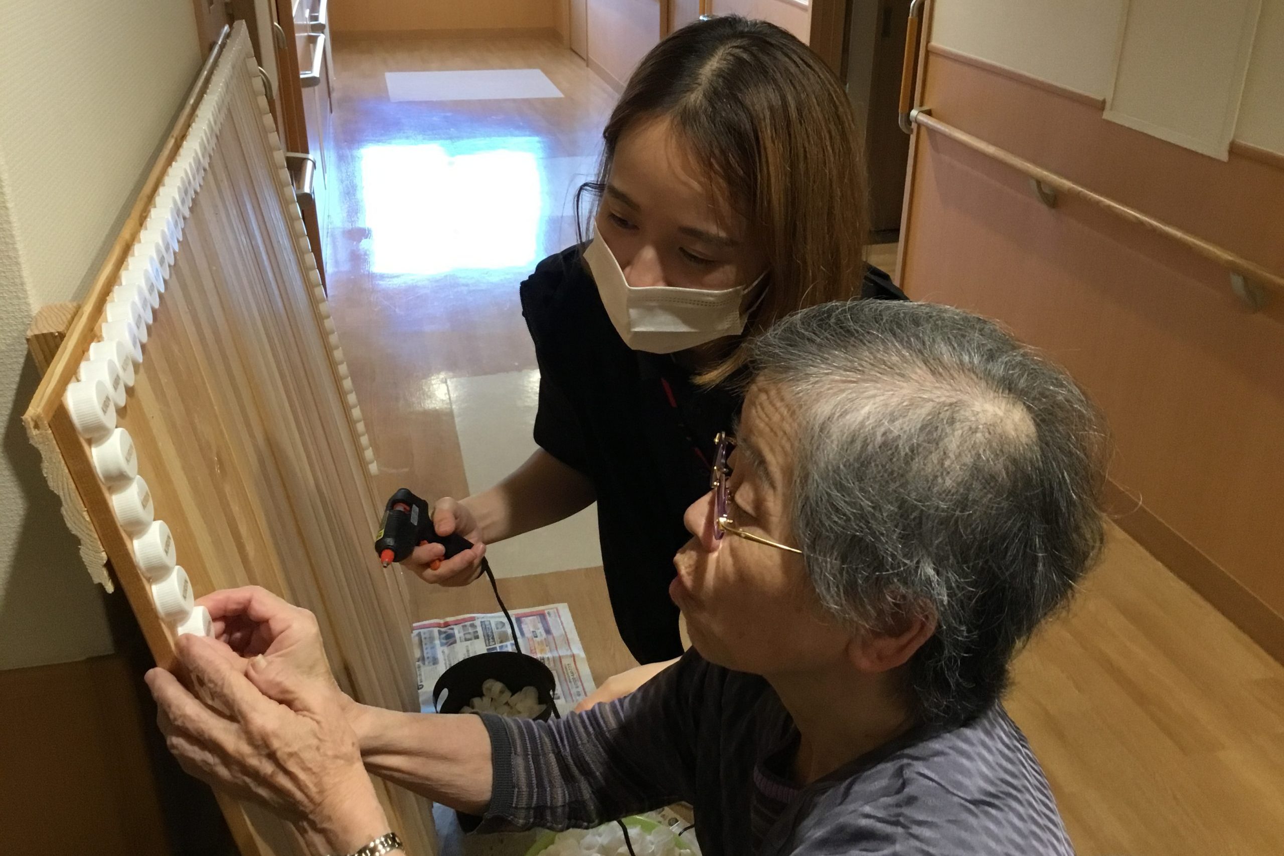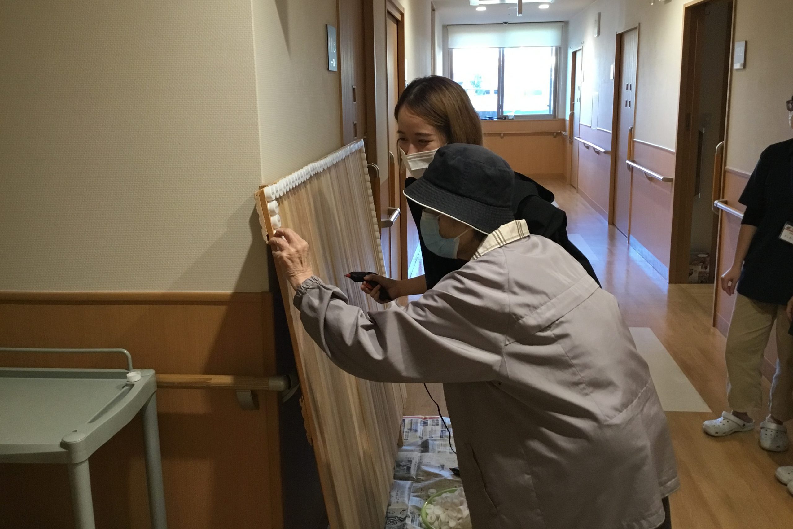ご入居者にも協力していただき、留学生も頑張って取り組んでいます。