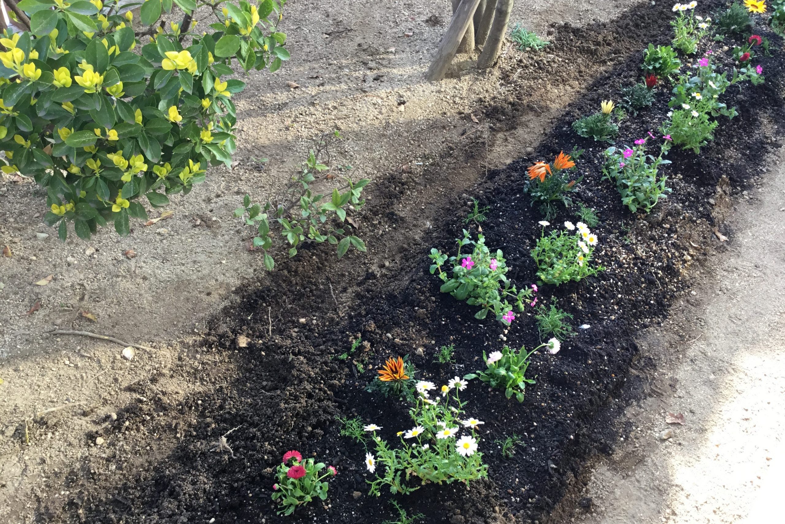 土を耕すところから始まり、2時間ぐらいかけてゆっくりお花を植えました。