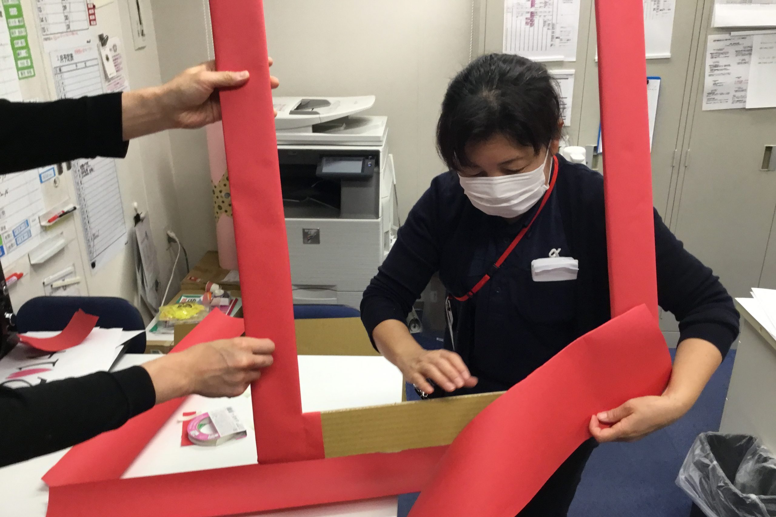 サービス提供責任者のやまださんが写真映えするフォトフレームを作成。