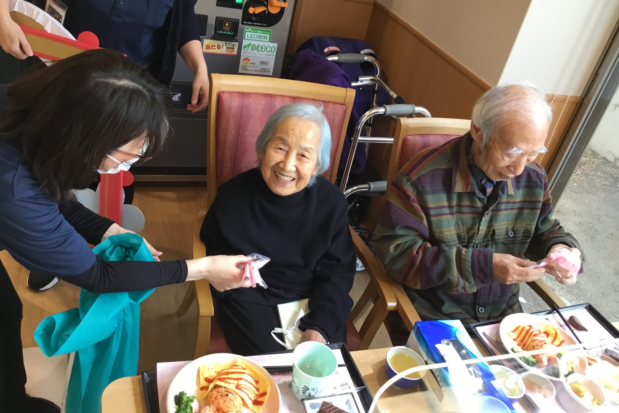 チョコレートを受け取るご入居者の嬉しそうなお顔を見て、さらに嬉しそうなスタッフの顔。