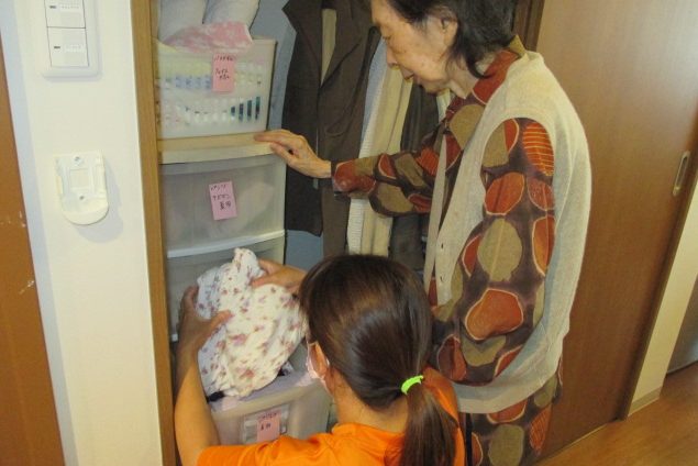当ホームでは、動作が行いにくい方や認知症の方に季節感を感じていただきながら、収納方法を一緒に考える機会が増えれば、そして、視覚的な変化や気分転換を感じることができる機会を持っていただくことを重視し、ただお手伝いをするのではなく一緒にすることにしました。