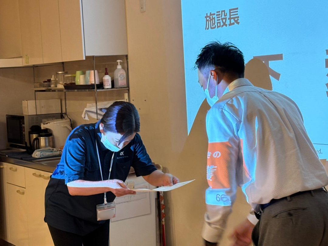 2施設のスタッフがアルファリビング長崎諏訪の杜に一堂に集まり、大人数での参加。