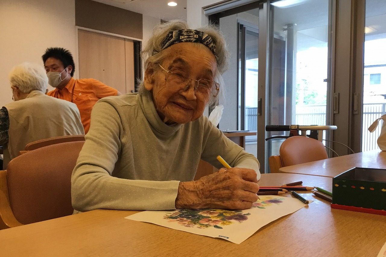 その横では、誰かがそばにいる安心感のもと好きな塗り絵をしたり。