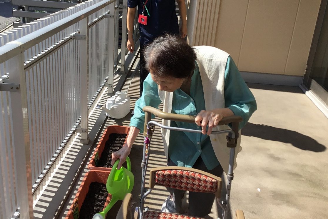 野菜と花は種から育てるため、ご入居者の皆さまも新芽が出てくるのを楽しみに毎日水やりをしています。