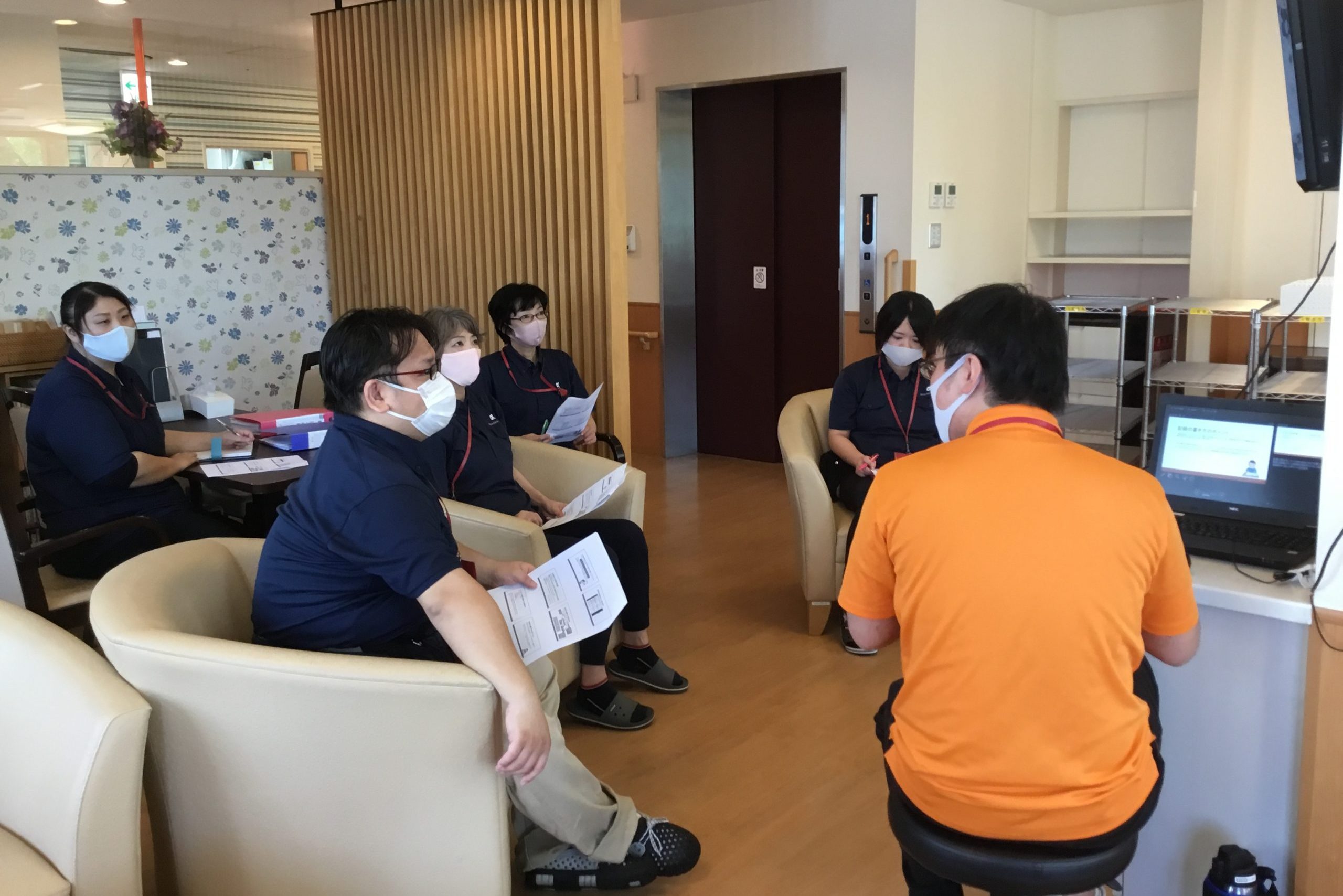 その中で、ご入居者のケアプランについて再度見直したり何がその方にとって元気の源になるのか、各スタッフと「気づき」の共有とその気づきから生まれるご入居者の「自分らしさ」の目線合わせをしています。