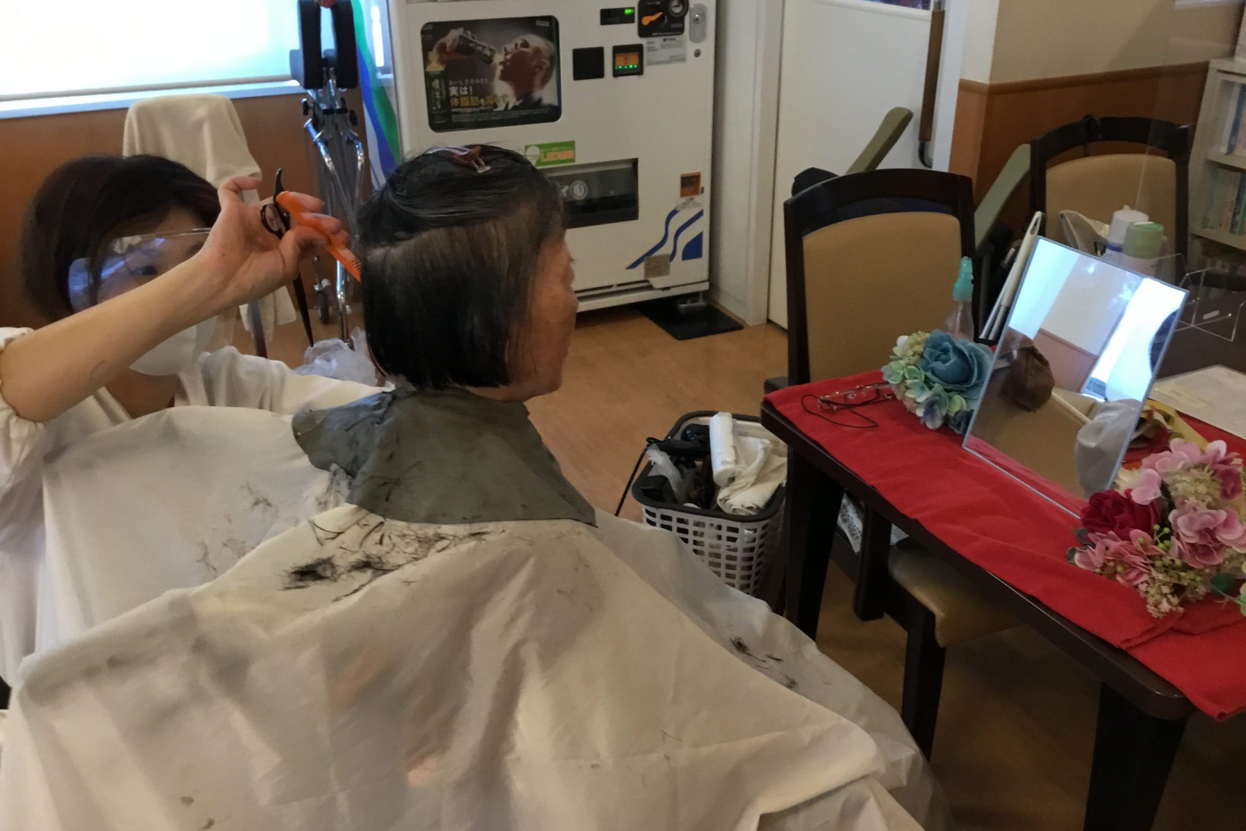 ご入居者やご家族からは「なんとか髪を切る事は出来ないですか?」との問い合わせも多く、検討に検討を重ね再開しました。