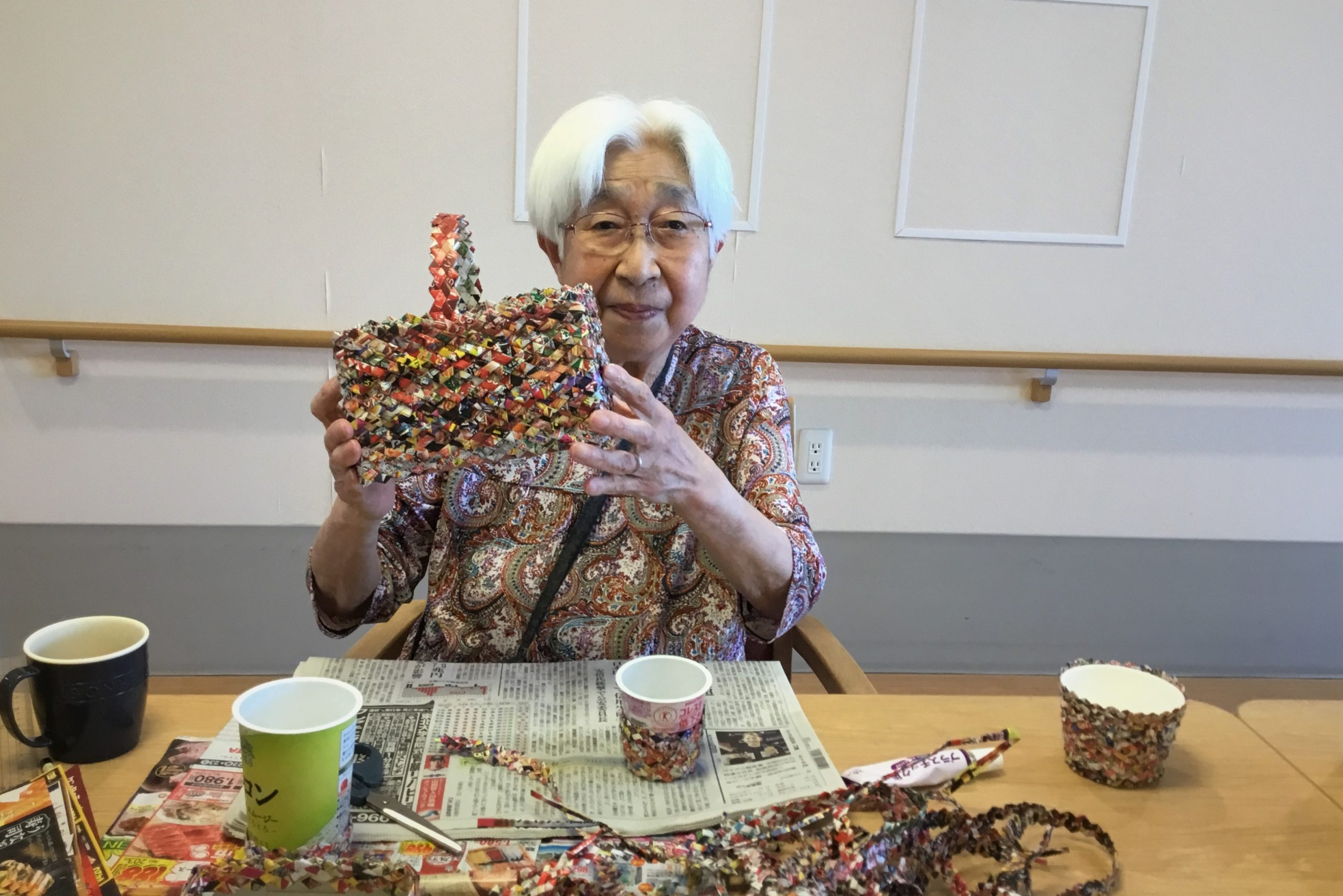 居室で過ごされている時は、余ったチラシで色々なものを製作されています。