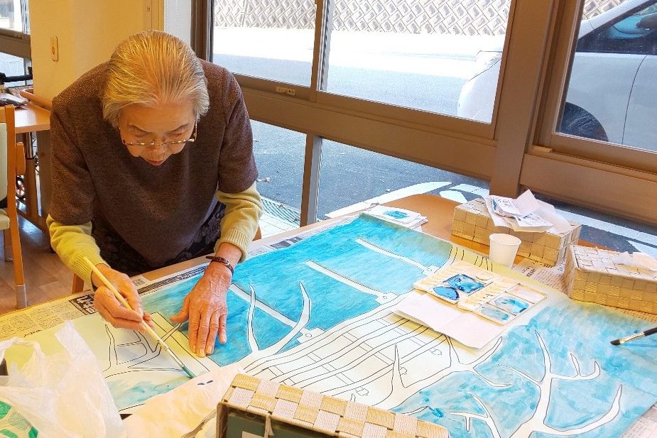 完成した壁画はレストラン内に飾っており施設のご入居者が見る事が出来ます。