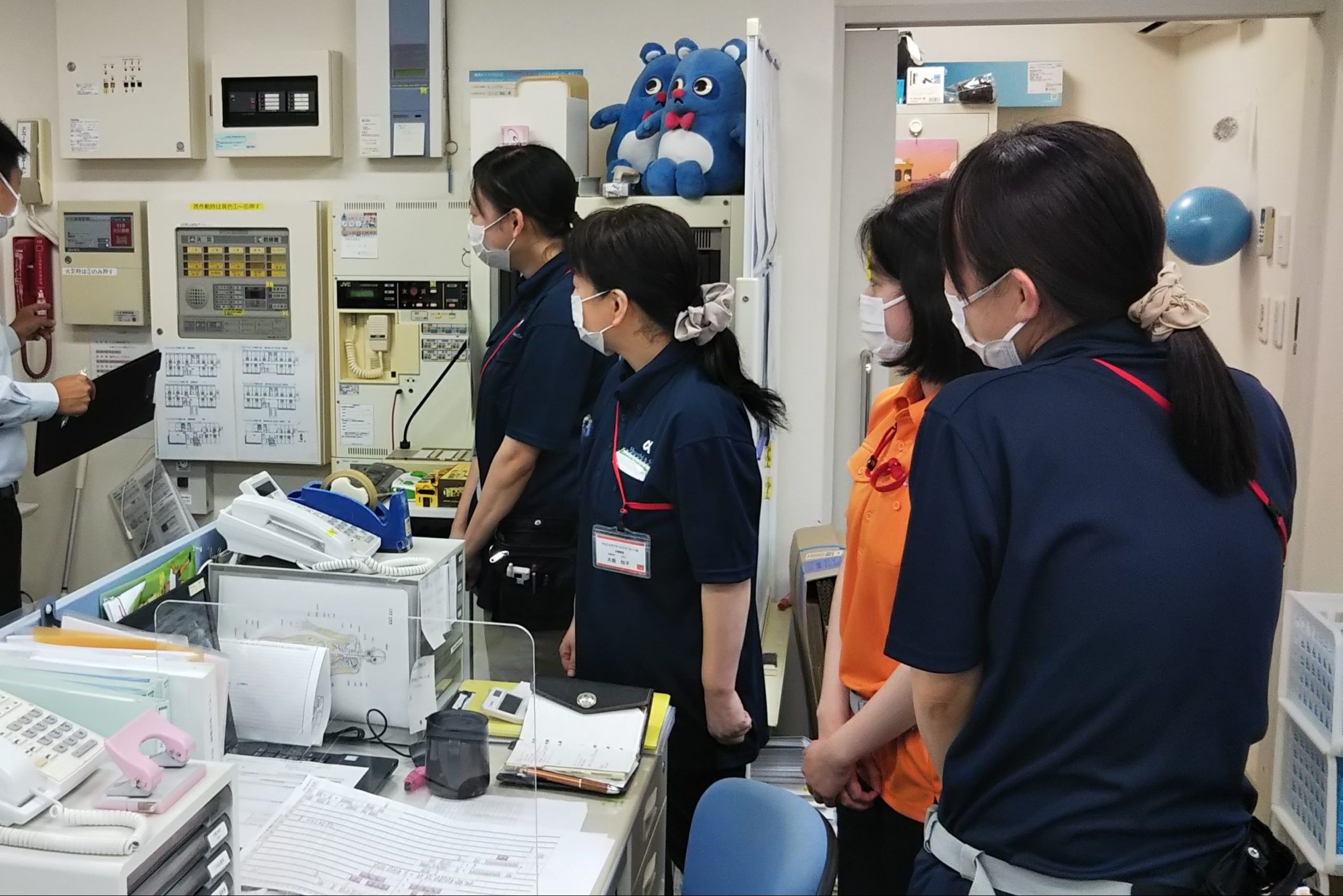 新人スタッフは初めての消防訓練だったので、設備説明・装置説明についてしっかりメモを取りながら話を聞いていました。