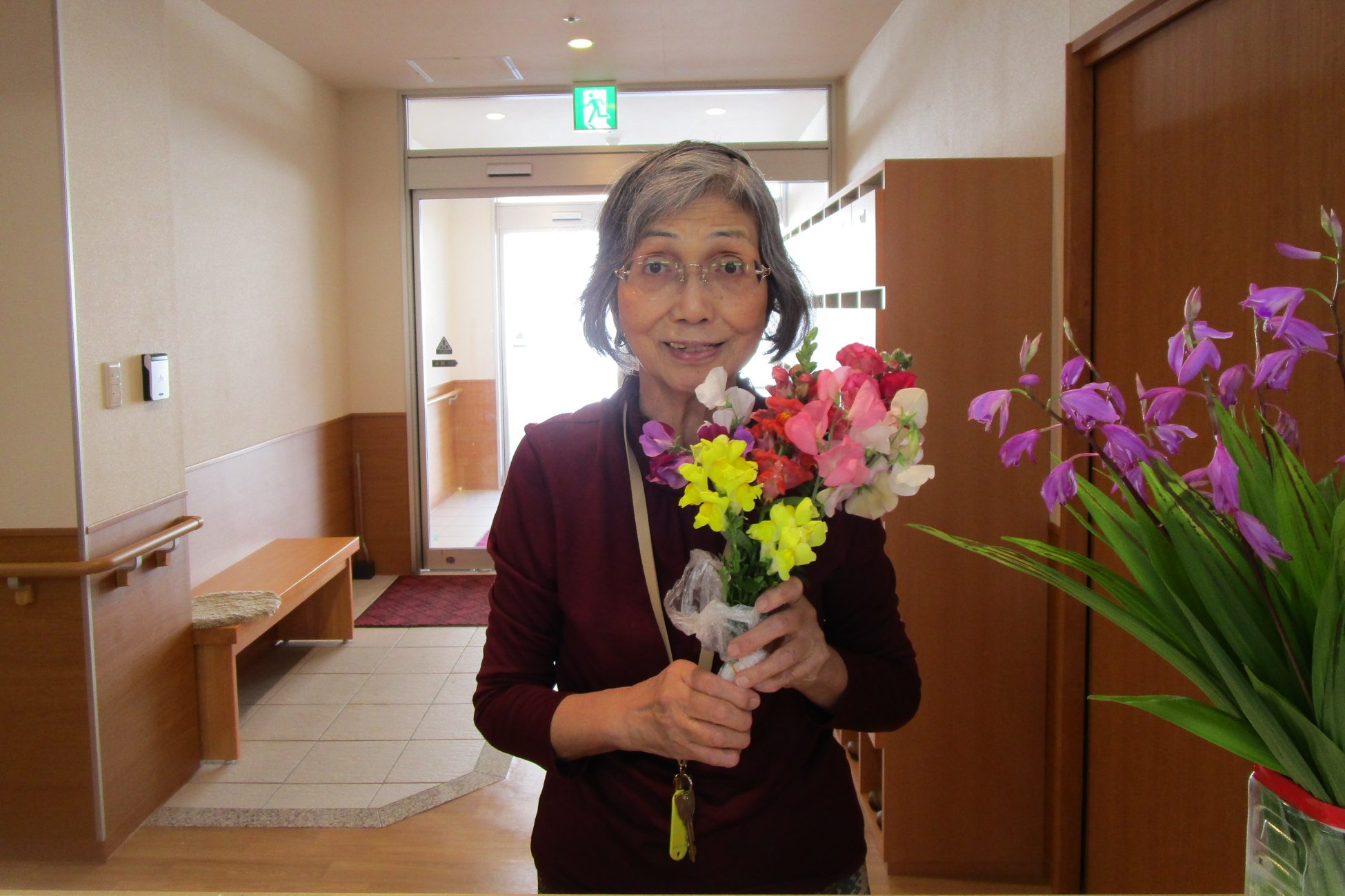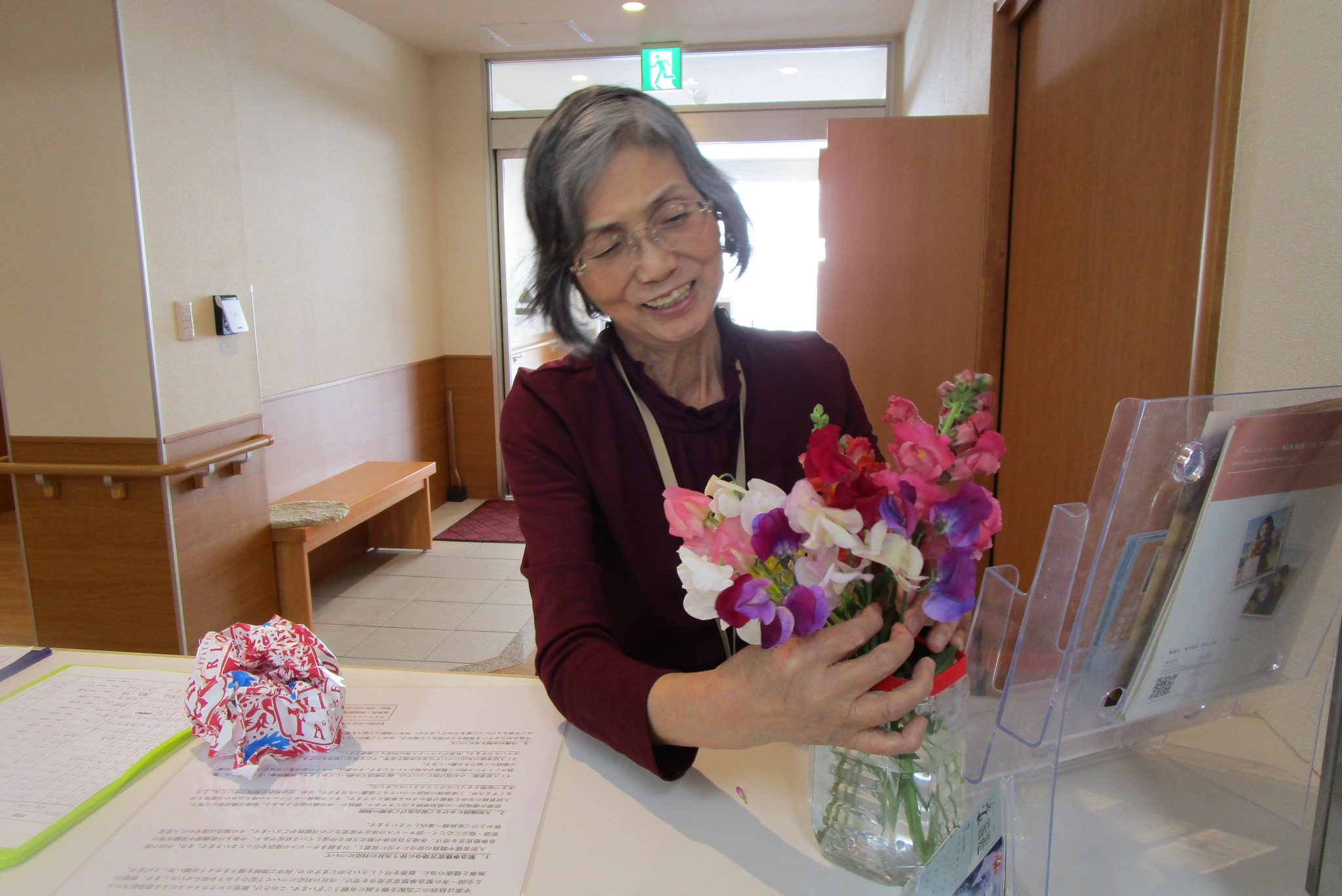 ゆがりさんのお花に元気がなくなったのに気付いたご入居者のHさまが、お花を持ってきてくださいました。