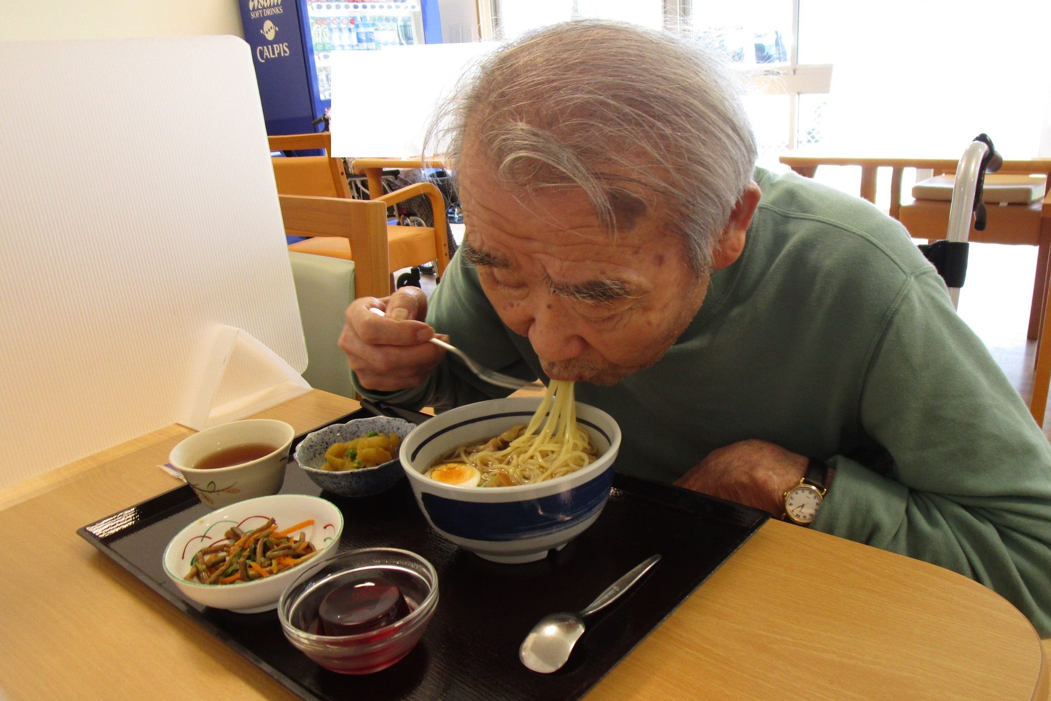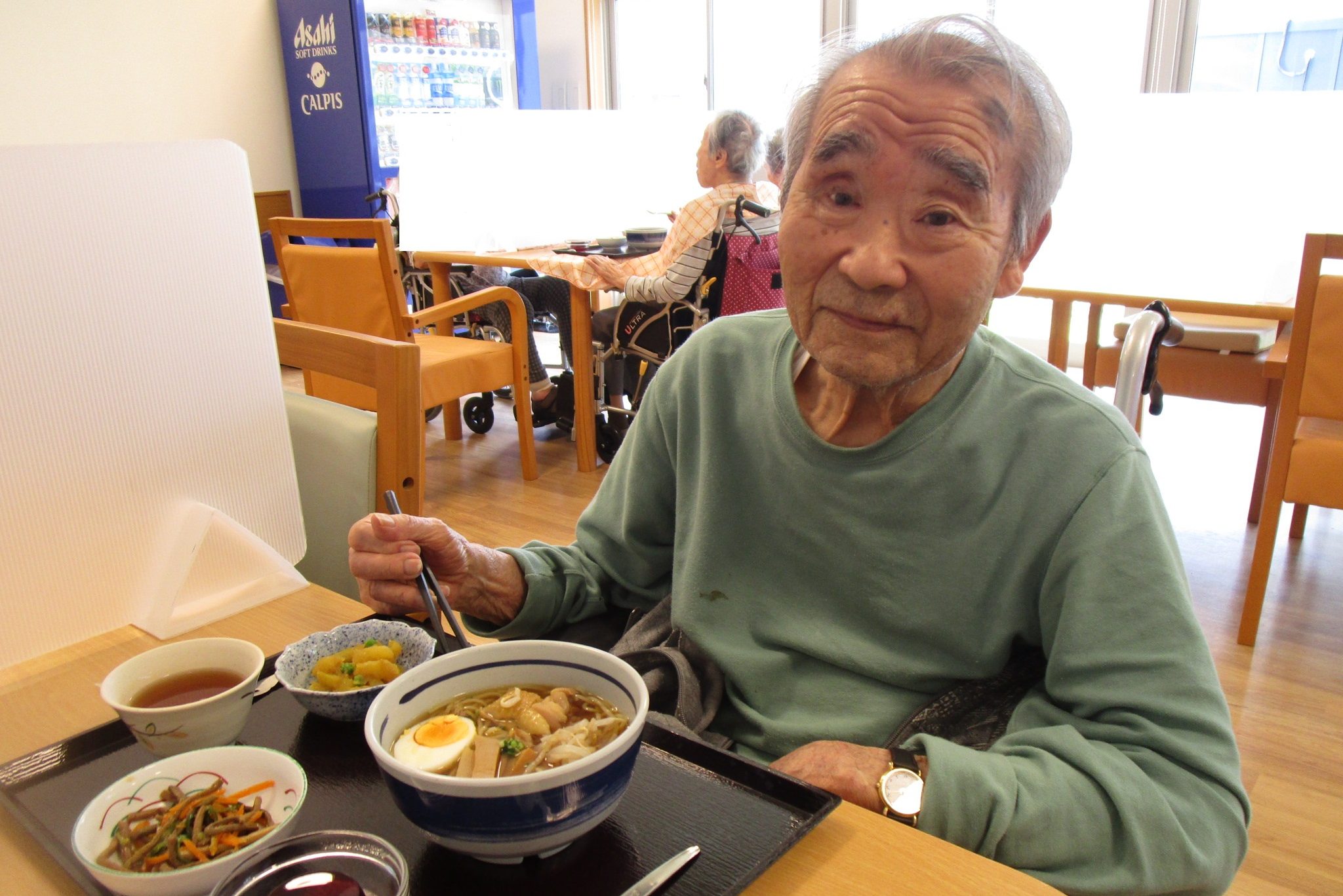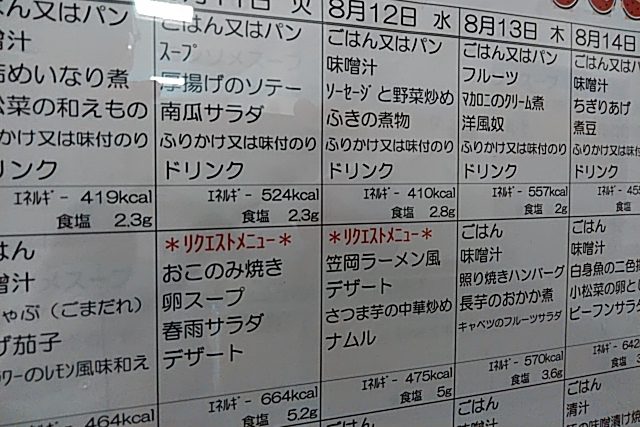 8月某日、アルファリビング岡山野田の昼食は、リクエストメニューの「笠岡ラーメン風」でした。