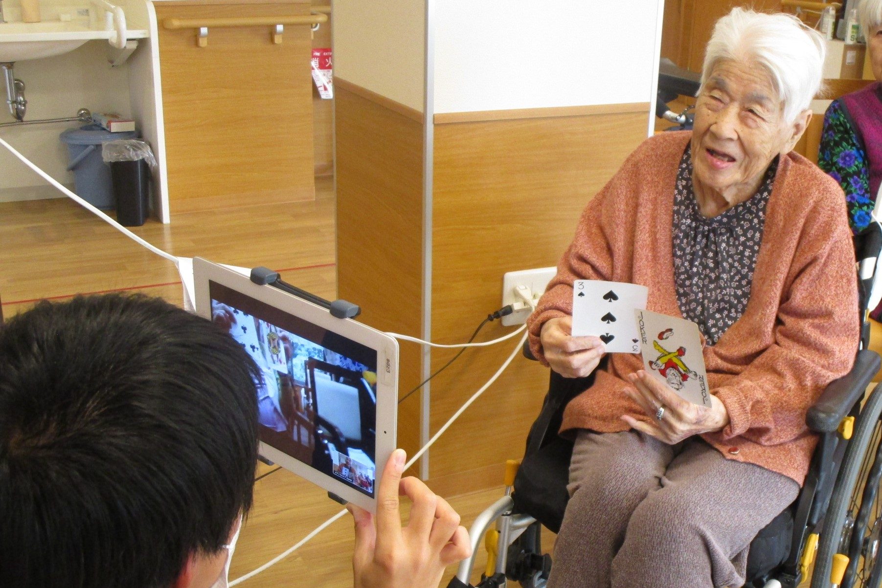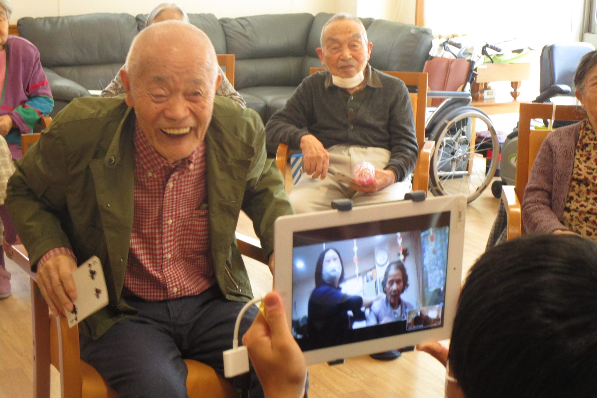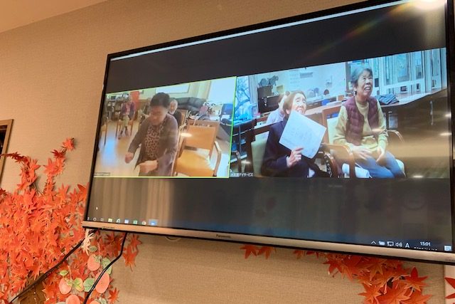 いつもはそれぞれのデイサービスで活動していますが、今回初めての試みとして、デイサービス同士をZoomで繋いでレクリエーションをしました。