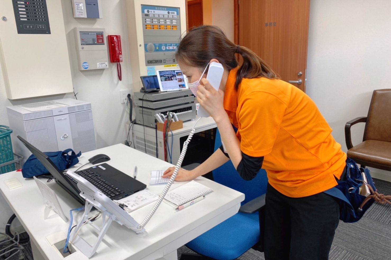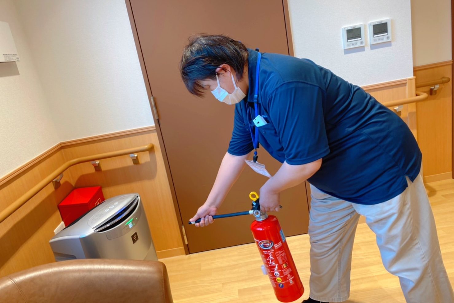 起こった災害の確認、消防署への通報、火災の初期消火、ご入居者の避難誘導などテキパキと行動する姿は冷静そのもの!