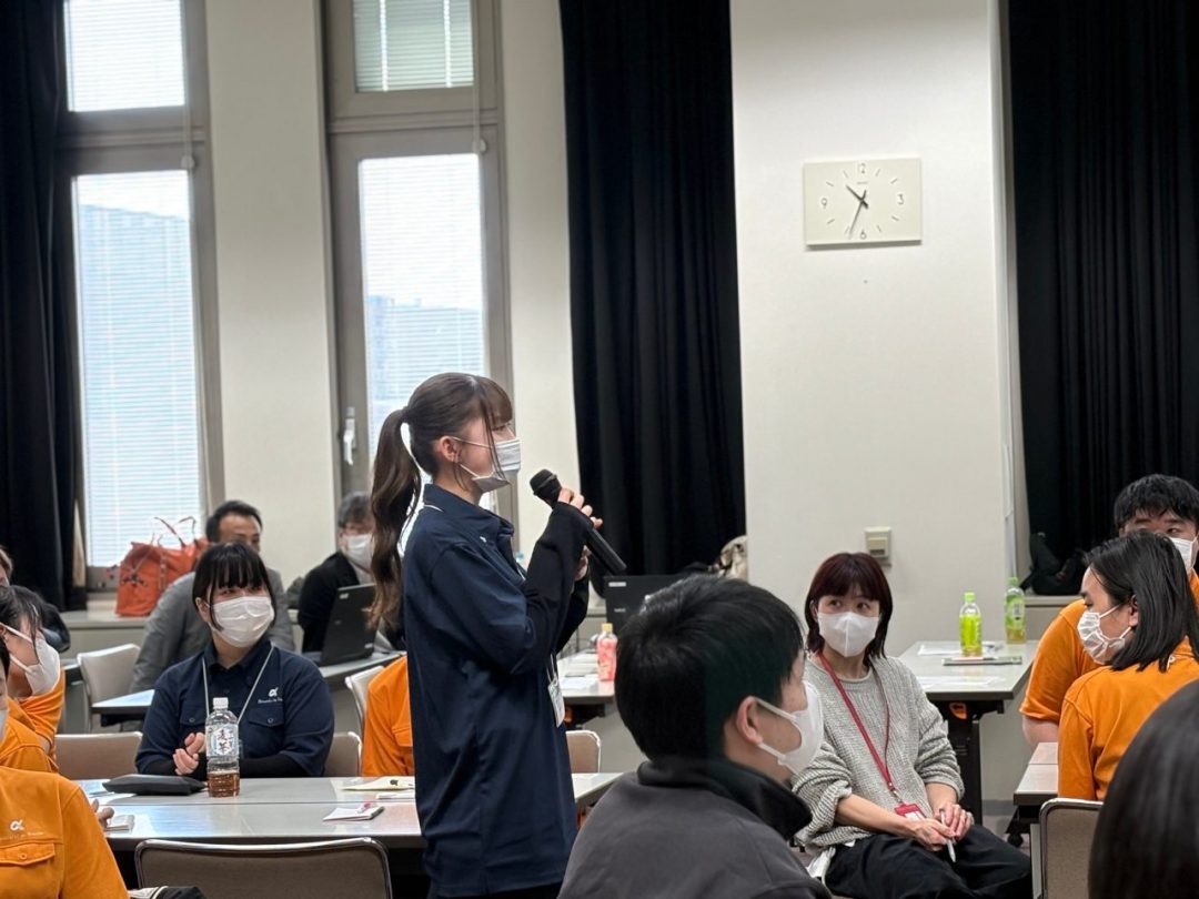 その後、毎年恒例の「伝言ゲーム」で和やかな雰囲気になったところで、「サ高住とは?」「アルファリビングとは?」「認知症とは?」といった基本的な知識を学びました。