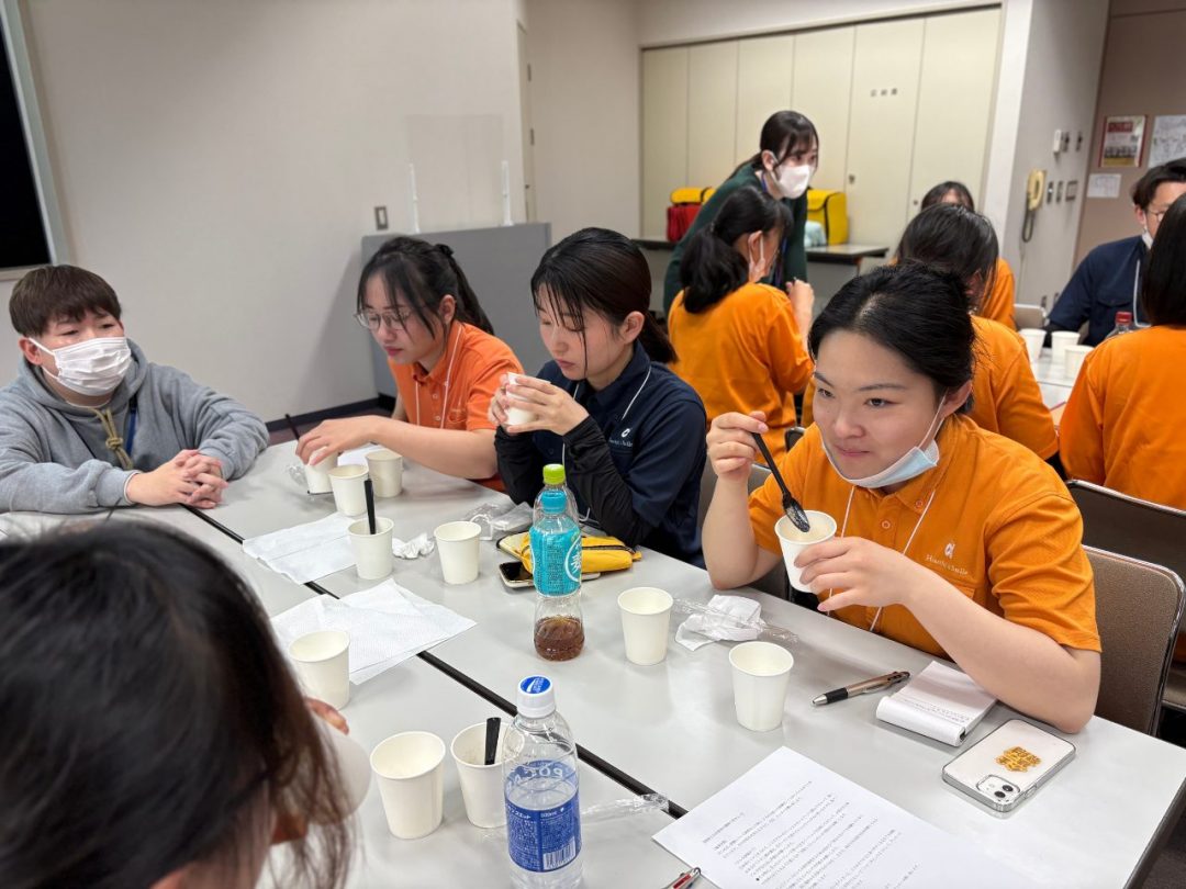 2日目の午前中は、接遇、ナースコール・電話対応、スピーチロック、食事介助(とろみ)など実践的な内容を学びました。