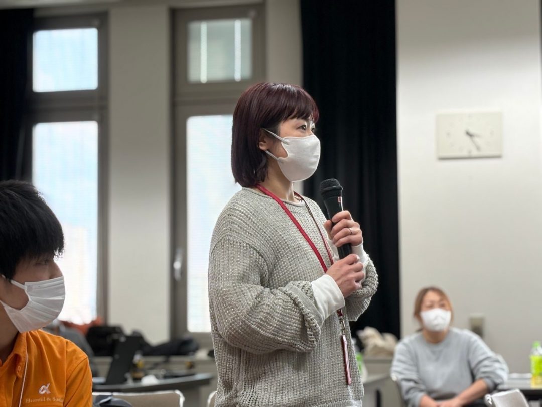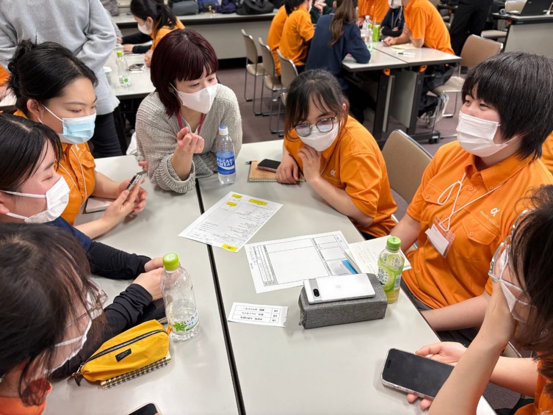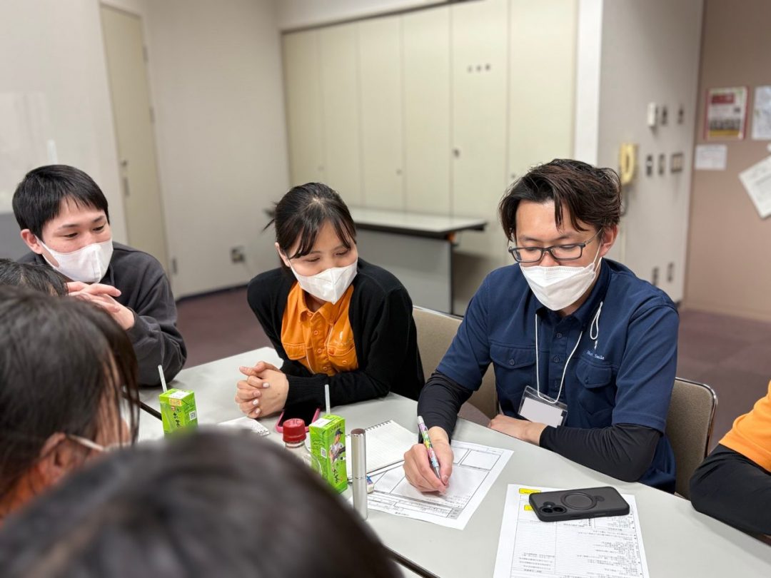 午後からは「レクリエーション企画・大会」で盛り上がりました。身体能力を維持しつつ楽しめるような、オリジナルのレクリエーションをグループで考え、意見を出し合いました。