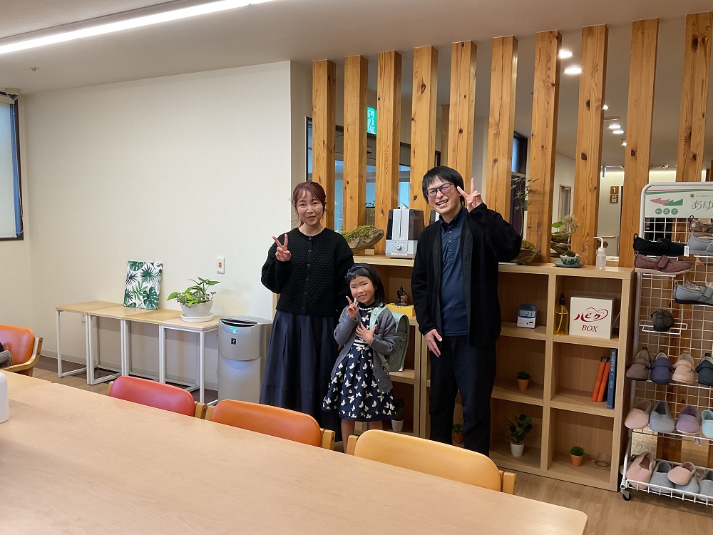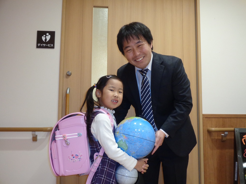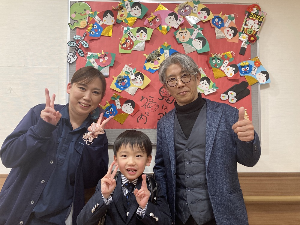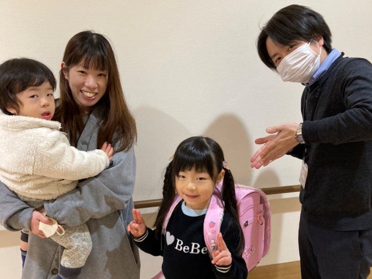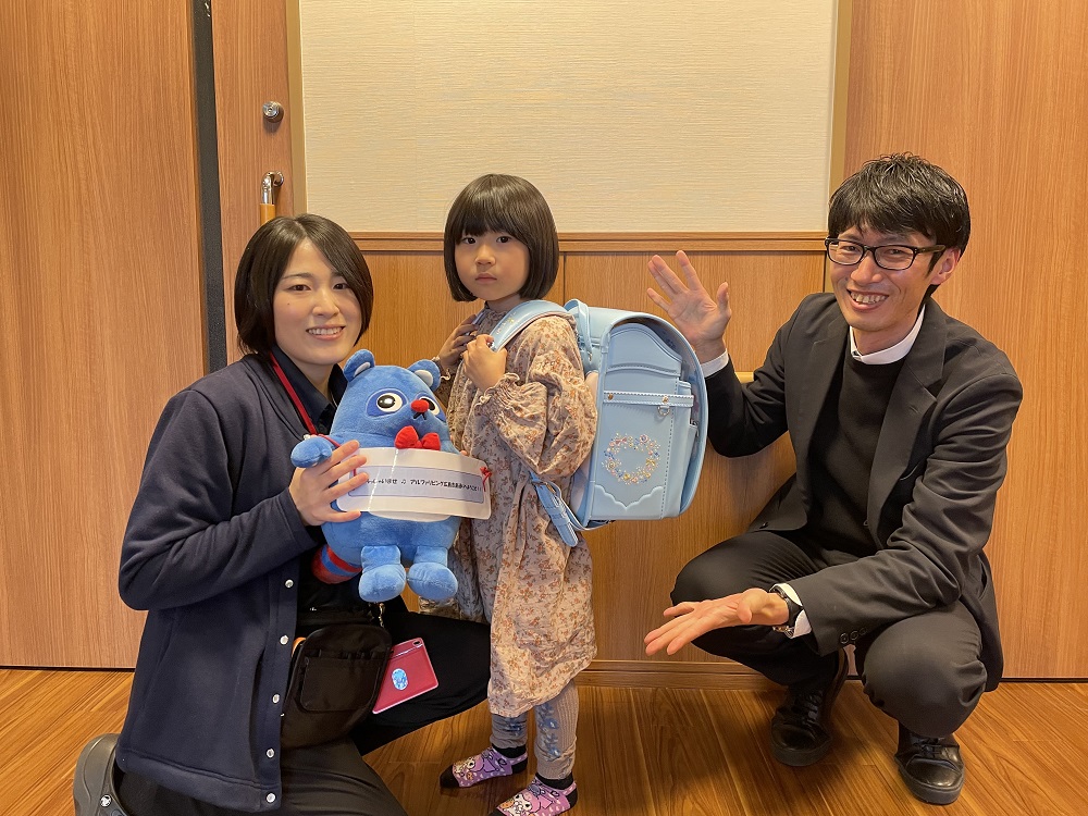 ランドセルはご家族で選んでいただき、パパママが勤務するアルファリビングでお一人おひとり贈呈しました。