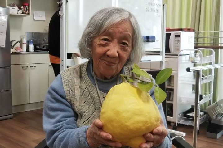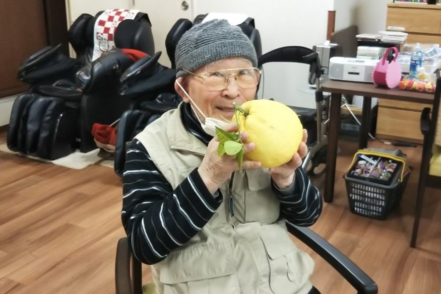 スタッフが「よくお似合いですね、ご家族が持ってきてくださったのですか?」とお訊ねすると、Sさまは「Oさんがくれたんじゃ!良いじゃろう?」と満面の笑みで答えて下さいました。