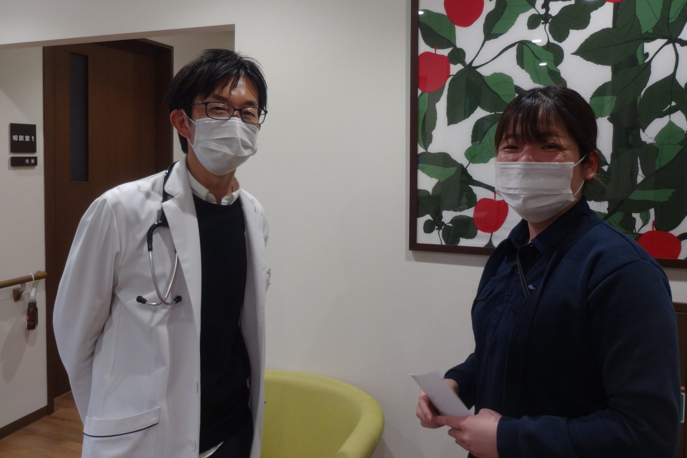 主に、訪問看護ステーションのスタッフとの情報共有が多いですが、介護スタッフともしっかりとコミュニケーションを取ってくださいます。