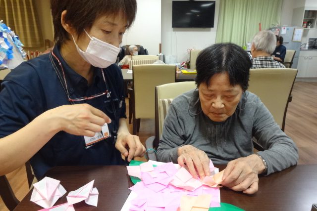 デイサービスでは毎月創作レクリエーションで壁画を作成しています。