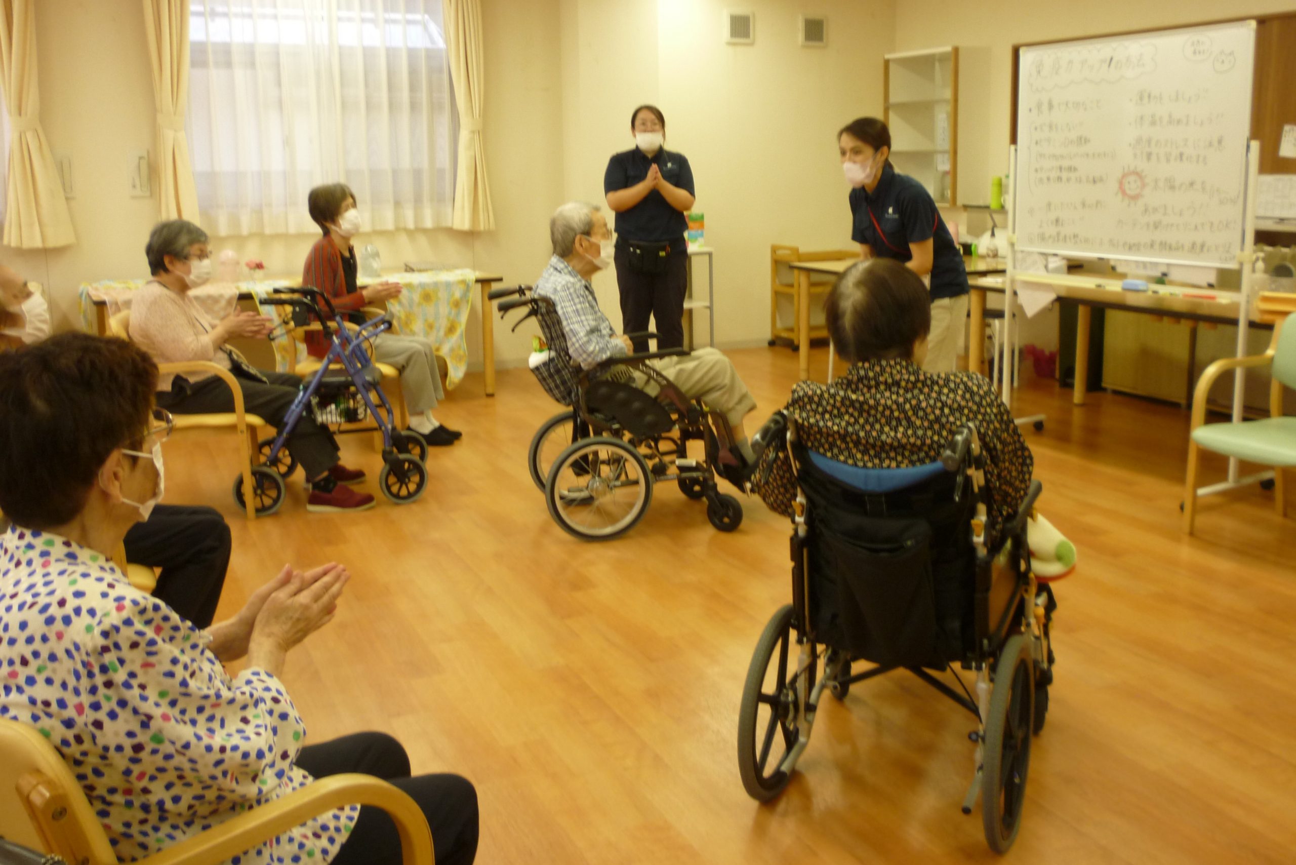 担当したスタッフはデイサービスで勤務する前は「人前で歌うなんて・・・レクリエーションが苦手なんです・・・」と言っていましたが、堂々としたイベント進行でスタッフの成長を感じ取ることが出来ました。