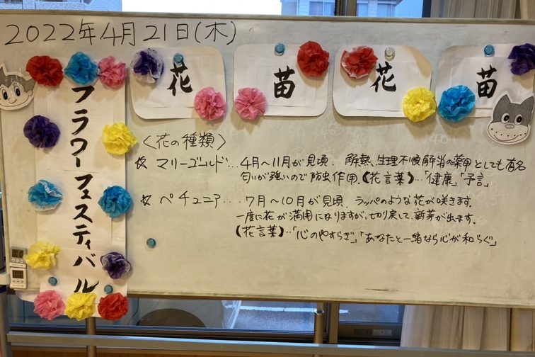 今回は計画していた4月の行事「フラワーフェスティバル」を開催しました。