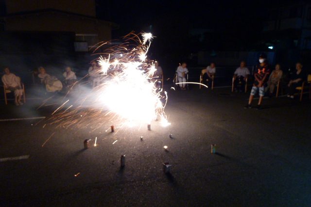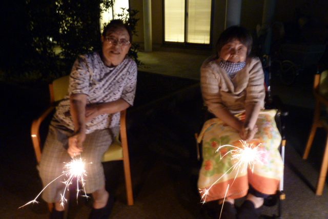 「だったら私たちで花火をしよう!!」と、花火大会が行われる予定だった15日に、ホームの駐車場で花火をしました。