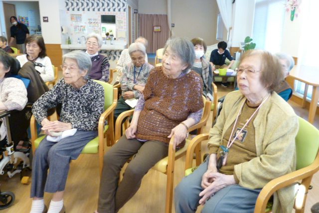 いつもはゲーム等身体を動かすレクリエーションが多いため、久しぶりに椅子に座ってゆっくり楽しんでいただきました。