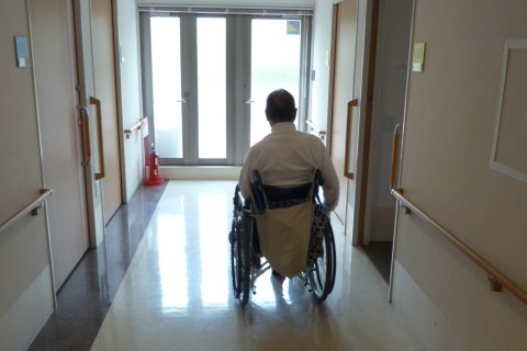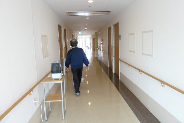 コロナ禍で外に出られない今、ご入居者はよく廊下を運動・リハビリのために歩かれています。