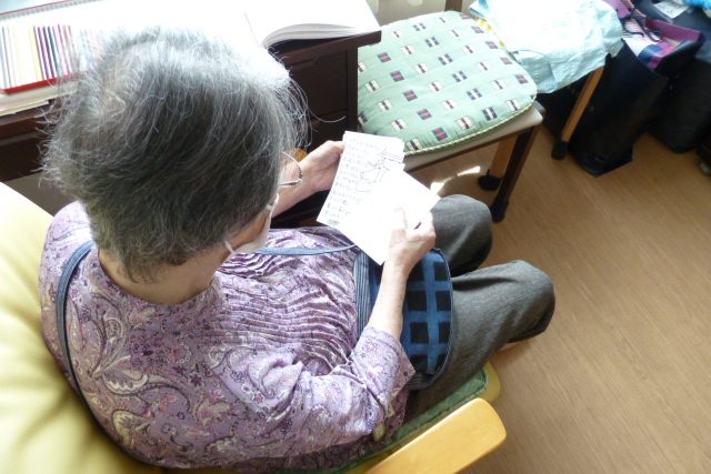 お食事中にお渡しすると、食事も中断して熱心に葉書をじーっと見ておられます。