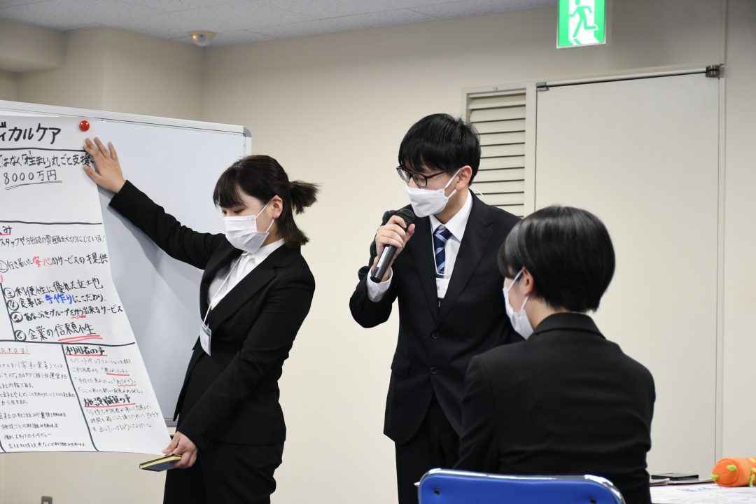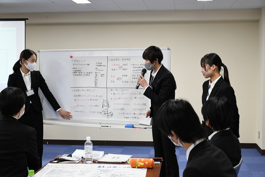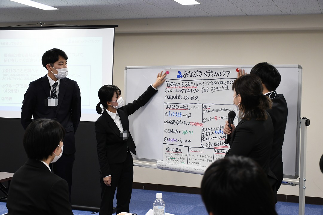 会社概要や事業内容、福利厚生、企業理念など様々なことを調べ、きれいに模造紙にまとめ発表しました。
