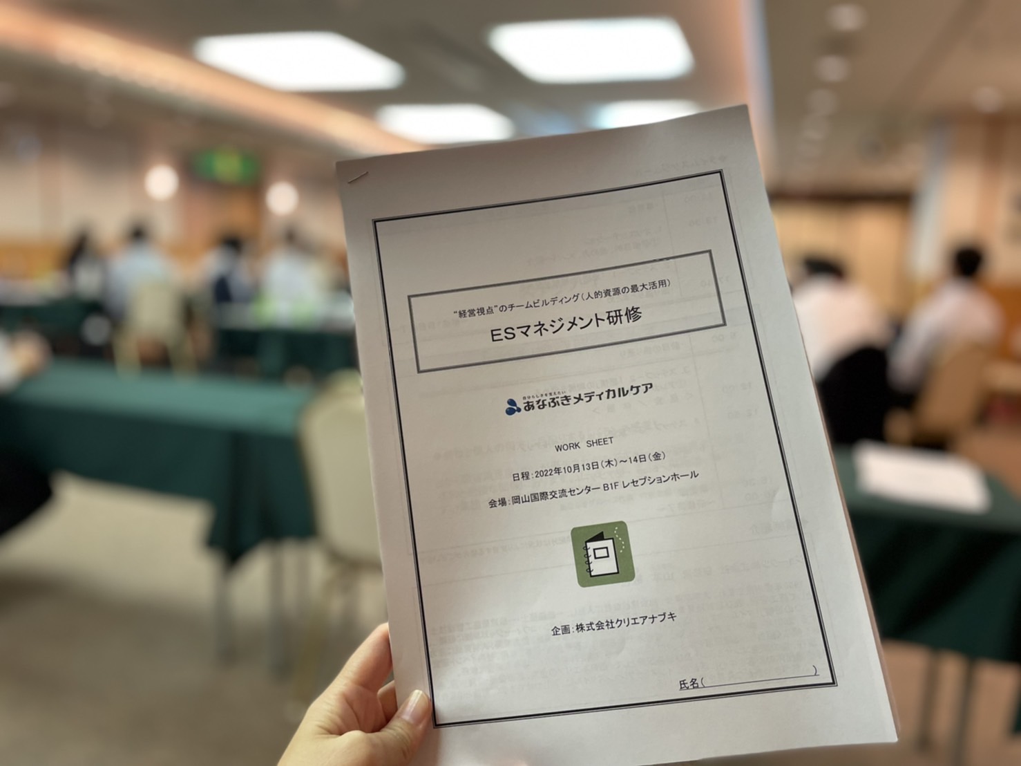 10月13~14日の2日間、岡山県で全施設長を対象とした「マネジメント研修」を社外の講師をお招きして開催しました。