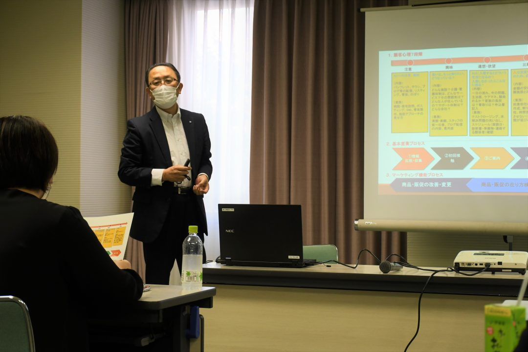 ひろた事業部長からは「施設長(管理職)の役割、社会性と経済性の両立」についてのお話です。施設長が陥りがちな落とし穴の例を具体的に紹介し、どう対応すればいいかについて考えました。また、客観的な思考を身につける方法、部下の理解を得るための伝え方などを学びました。