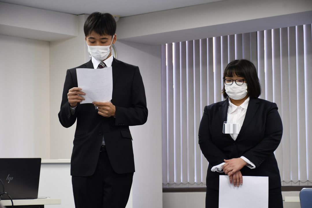 名前や出身地のほかに、当社に就職することを決めた理由もお話していただきました。