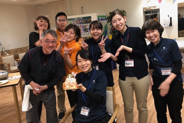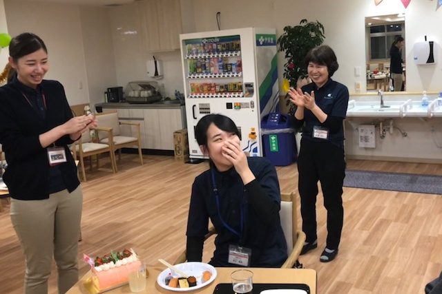 実は、この日が誕生日で20歳をむかえた介護スタッフのありむらさんは人生初の夜勤でした。(ごめんなさい!そんなことも知らず夜勤を入れてしまいました!)