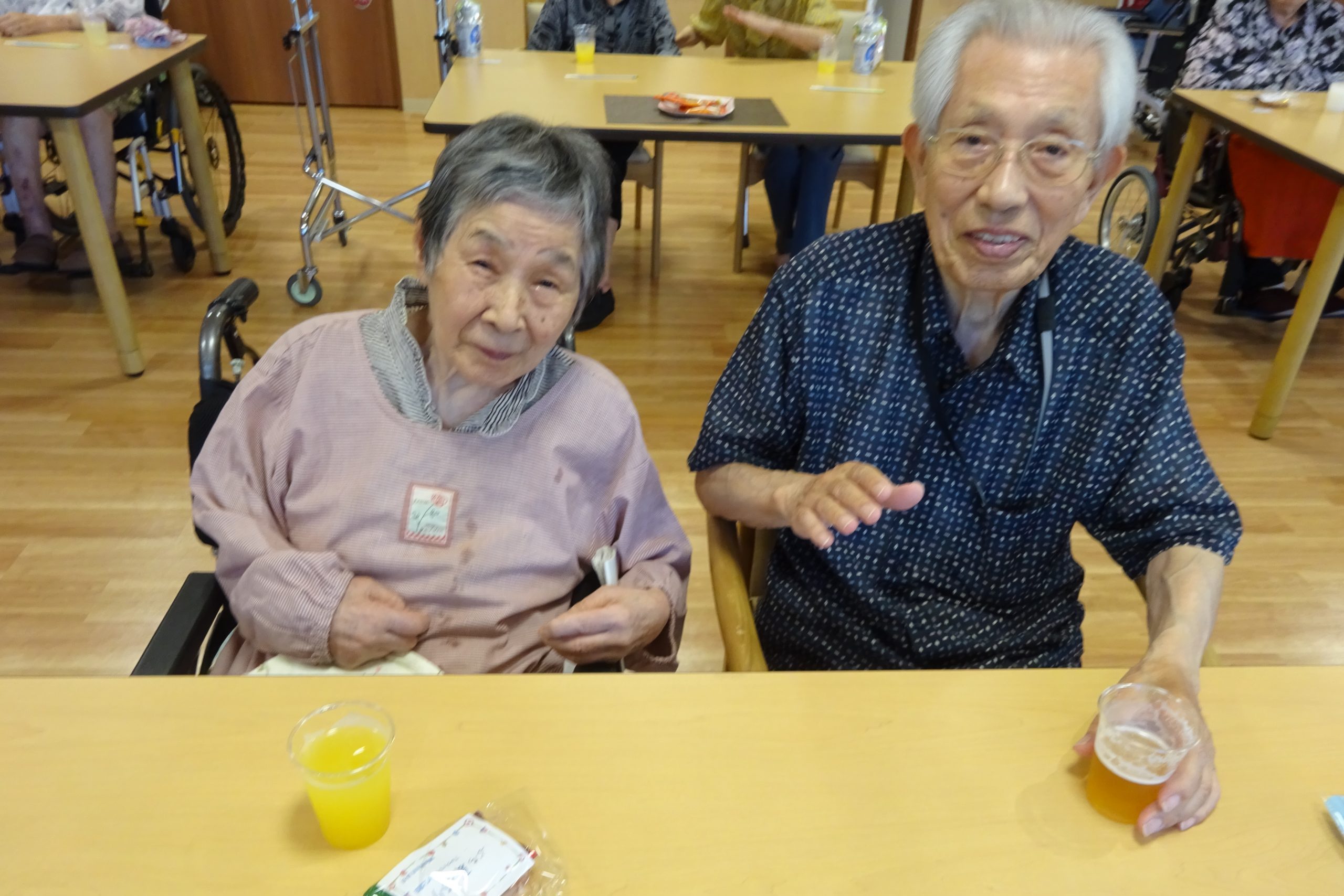 介護スタッフまえのさんの巧みな話術で場の雰囲気を和ませ、楽しい雰囲気に。